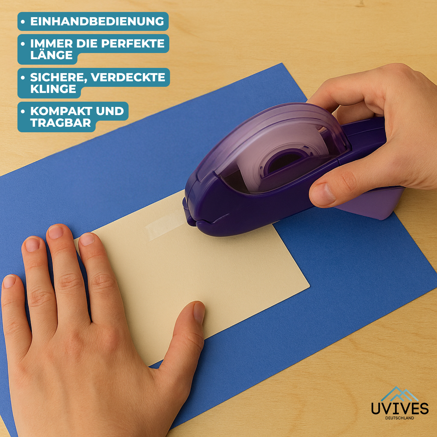 ✔️ Automatisk tejputmatning: Tryck bara på spaken – exakt 2,5 cm tejp utan riv eller drag.