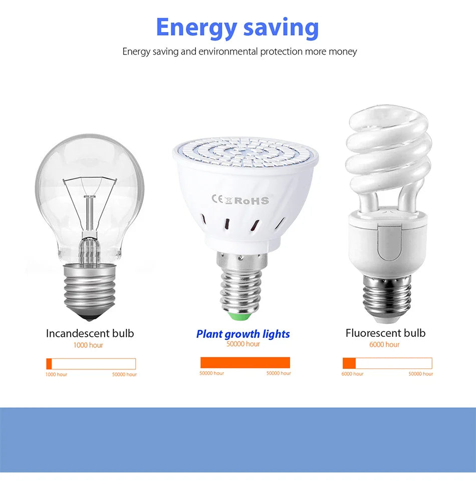 Carvallo LED | E27/E14/B22/GU10/MR16 | Fullspektrum | 48/60 LEDs för växt & blomning