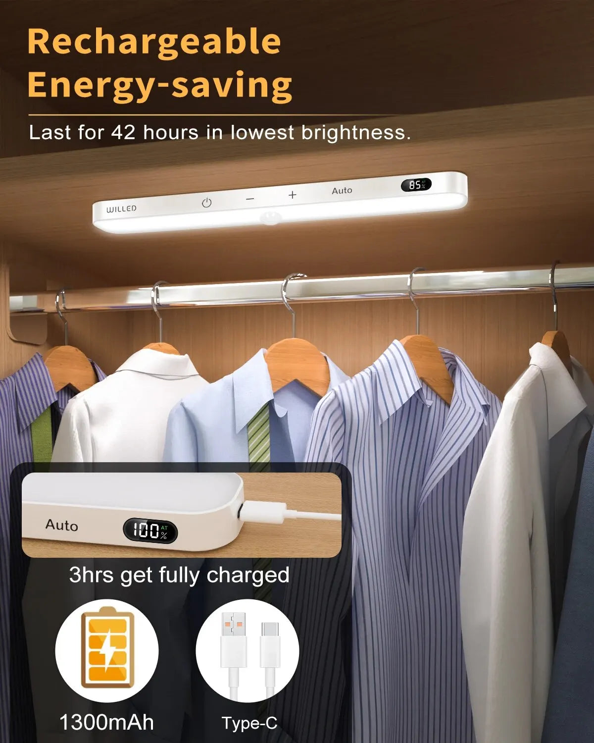 Carvallo LED ljusskena | Med rörelsesensor & batteriindikator | Uppladdningsbar | För skåp, kök & hall