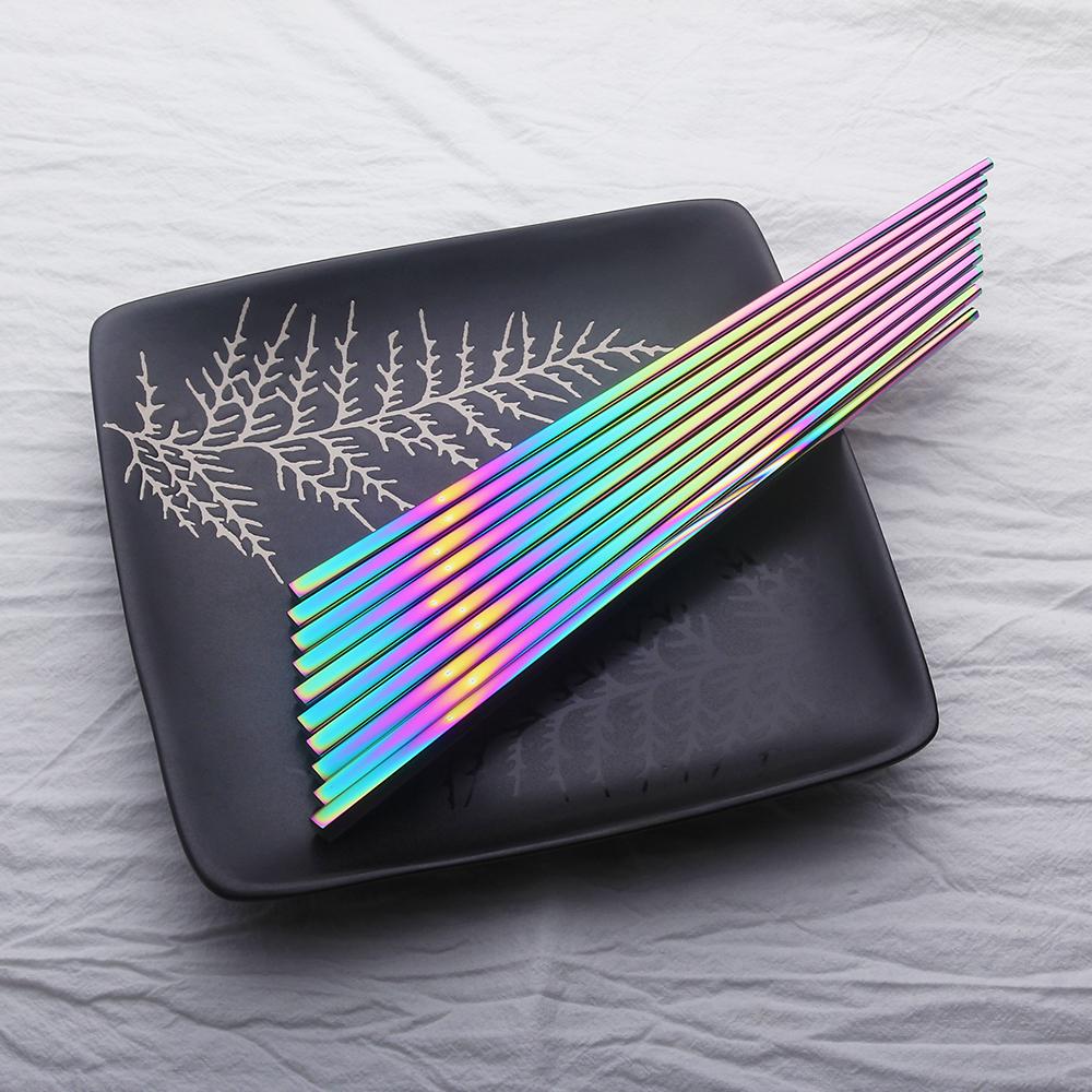 Carvallo – Luxe Iridescent Stainless Steel Chopsticks with Elegant Design (Set of 6 Pairs)