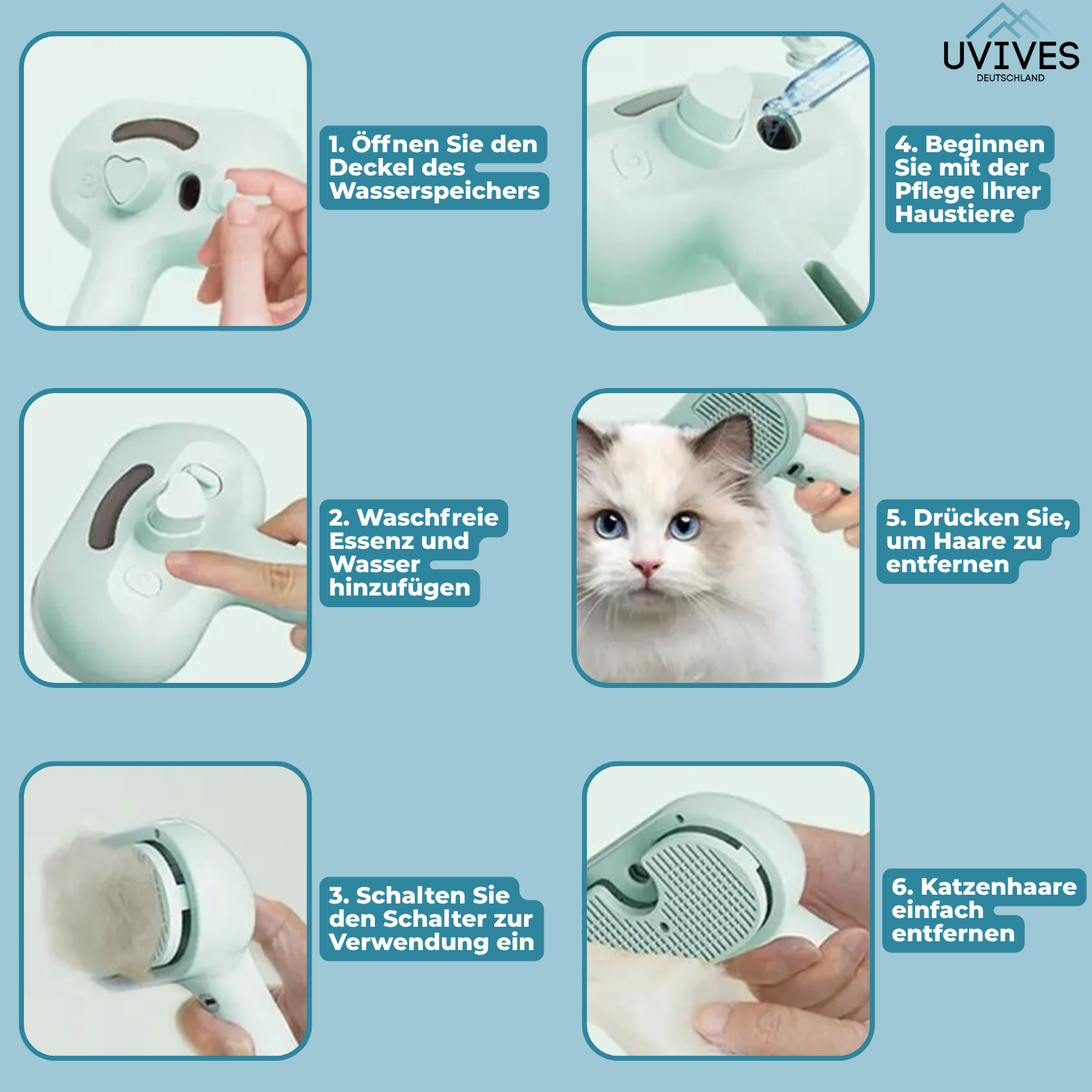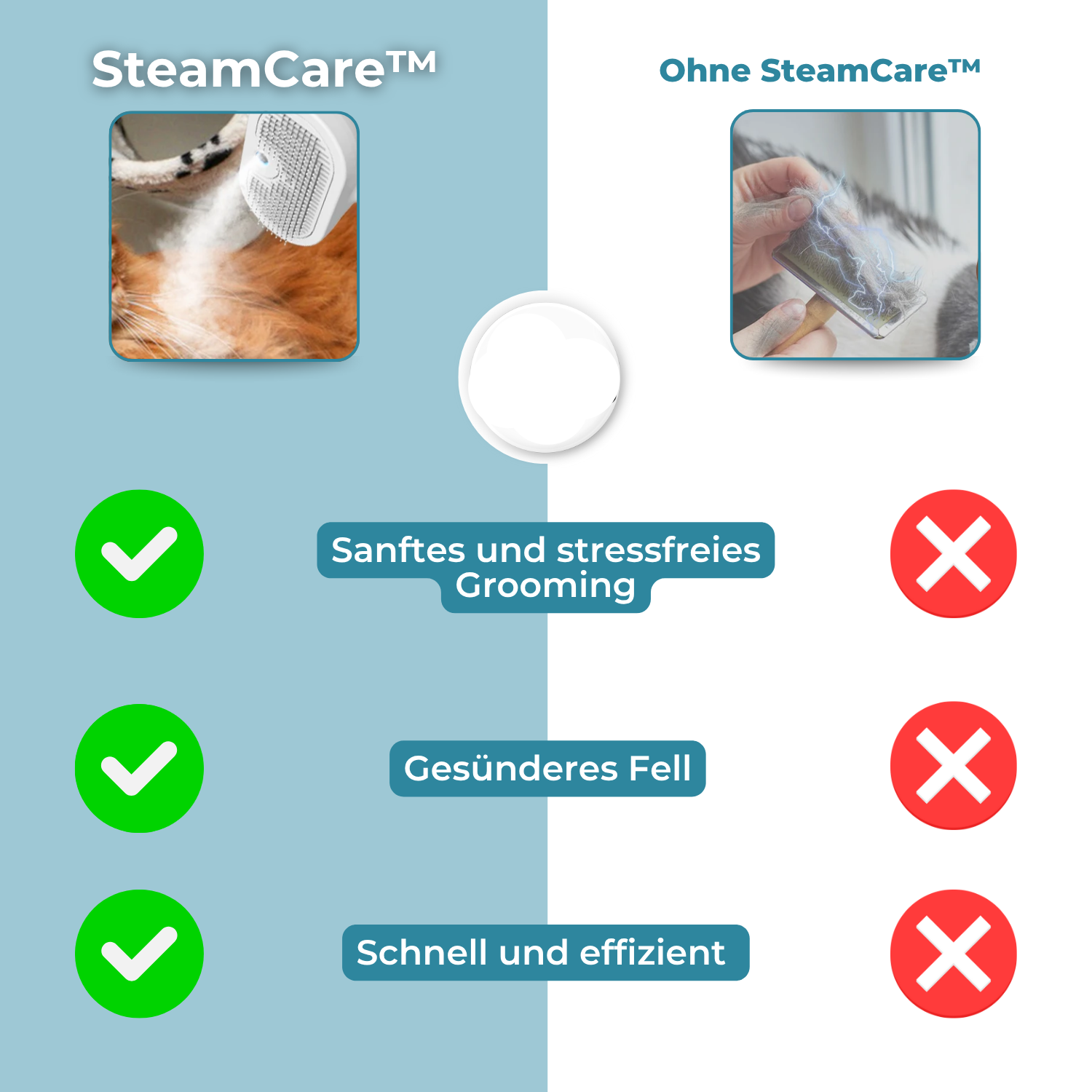 Drar ditt djur sig alltid undan när du borstar eller ser stressat ut? Carvallo vårdar med mjuk ånga, istället för med hård borste – för mindre motstånd och mer välbehag. Aldrig mer ryck, rädsla eller tovigt hår när du kammar.