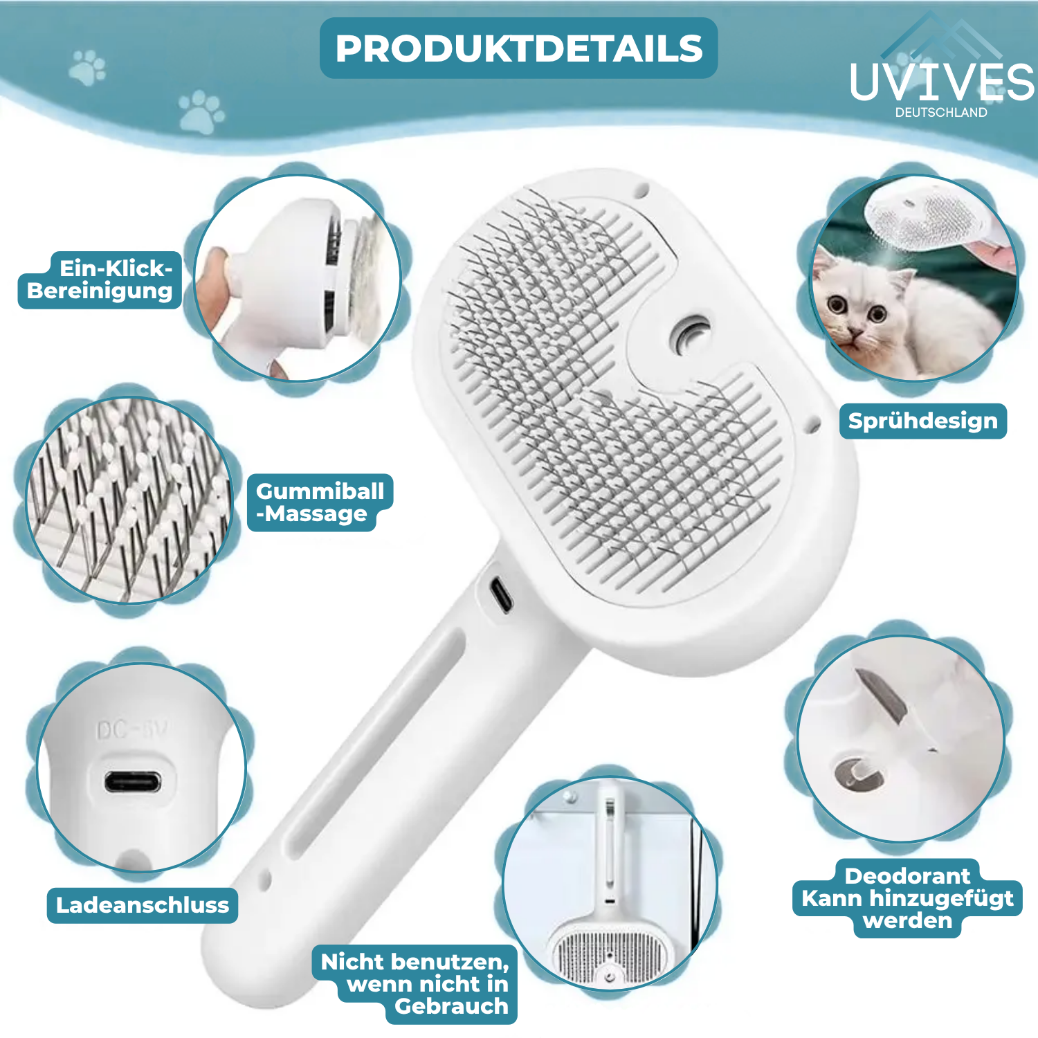 1 x Carvallo ångborste för husdjur