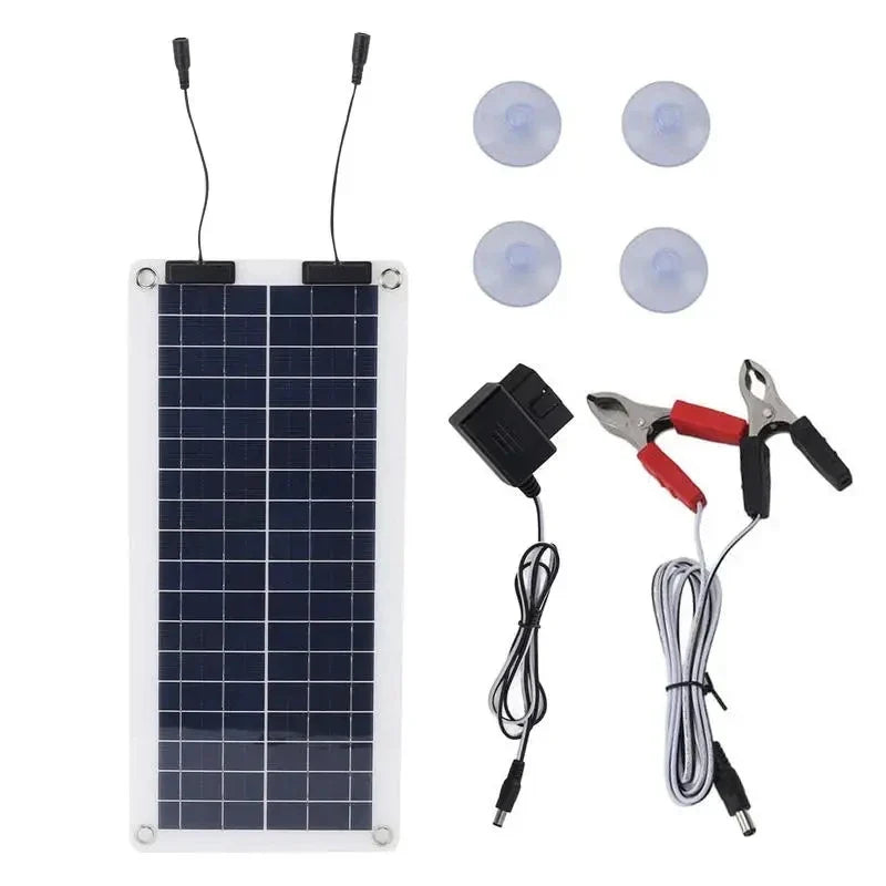 📌 Högeffektiv & mångsidig: Klass A polykrystallina solceller säkerställer maximal energiutbyte – idealiskt för att underhålla ditt 12V–24V batteri eller för att ladda powerbanks & smartphones.