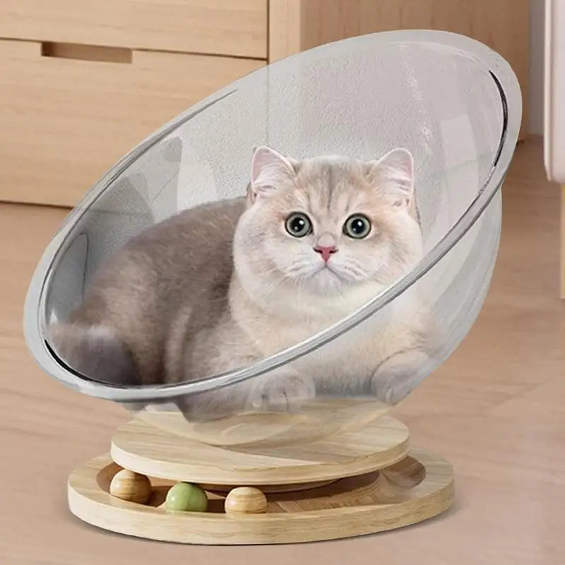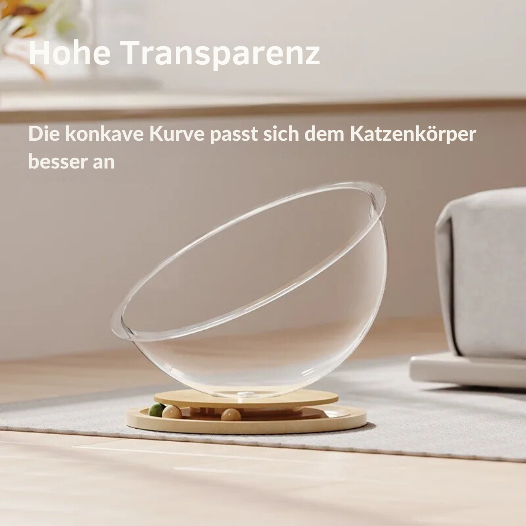 Den halvrunda, genomskinliga skalen omsluter din katt och erbjuder en säker och lugnande sovmiljö. Den ergonomiska designen stödjer en optimal hållning och ger en bättre sömn.
