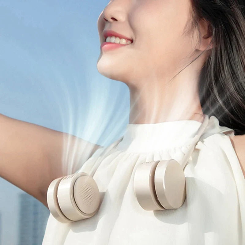 Frisk luft – helt utan händer! Den Carvallo nackfläkten ger behaglig kylning, var du än är. Lätt, tyst och utan blad – idealisk för resor, sport, hemmet eller kontoret. Bara hänga runt halsen och andas ut.