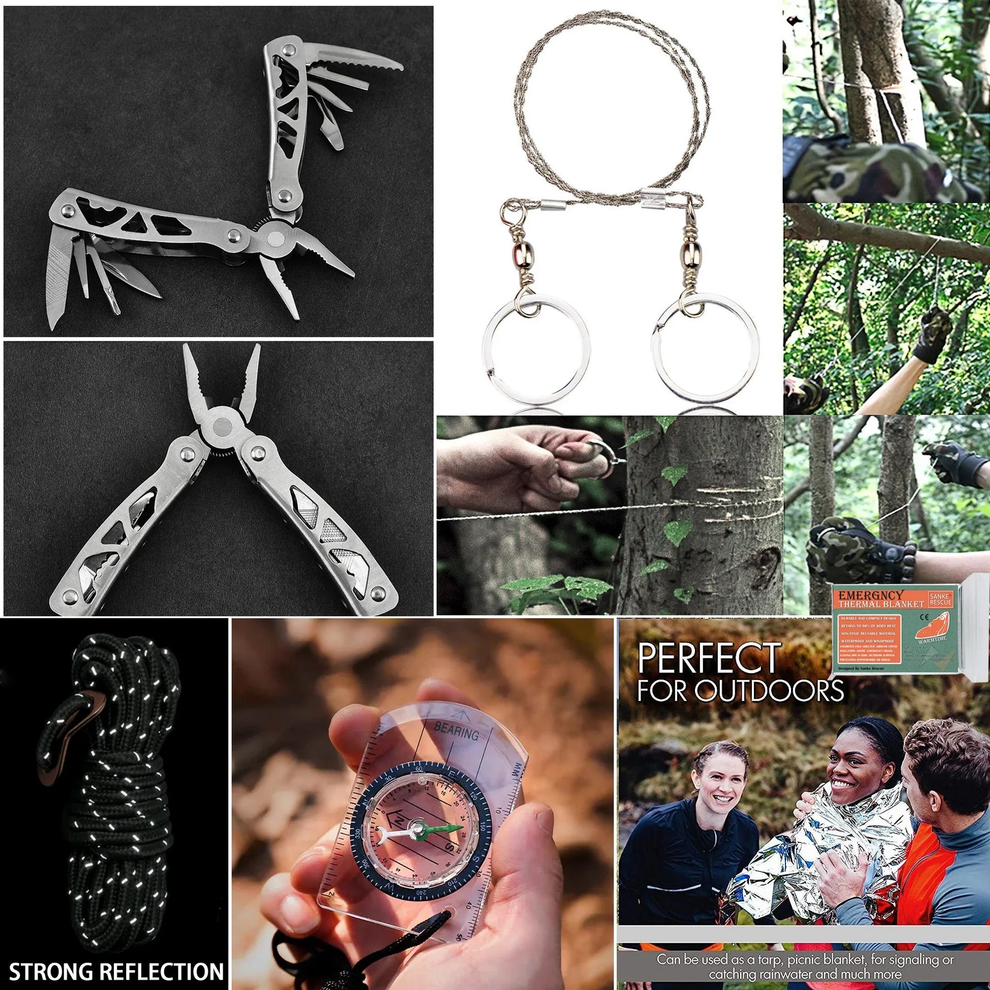 📌 24-i-1 överlevnadskit: Innehåller allt du behöver – från multiverktyg, taktisk penna och stagtråd till tourniquet, bandage och CPR-mask.