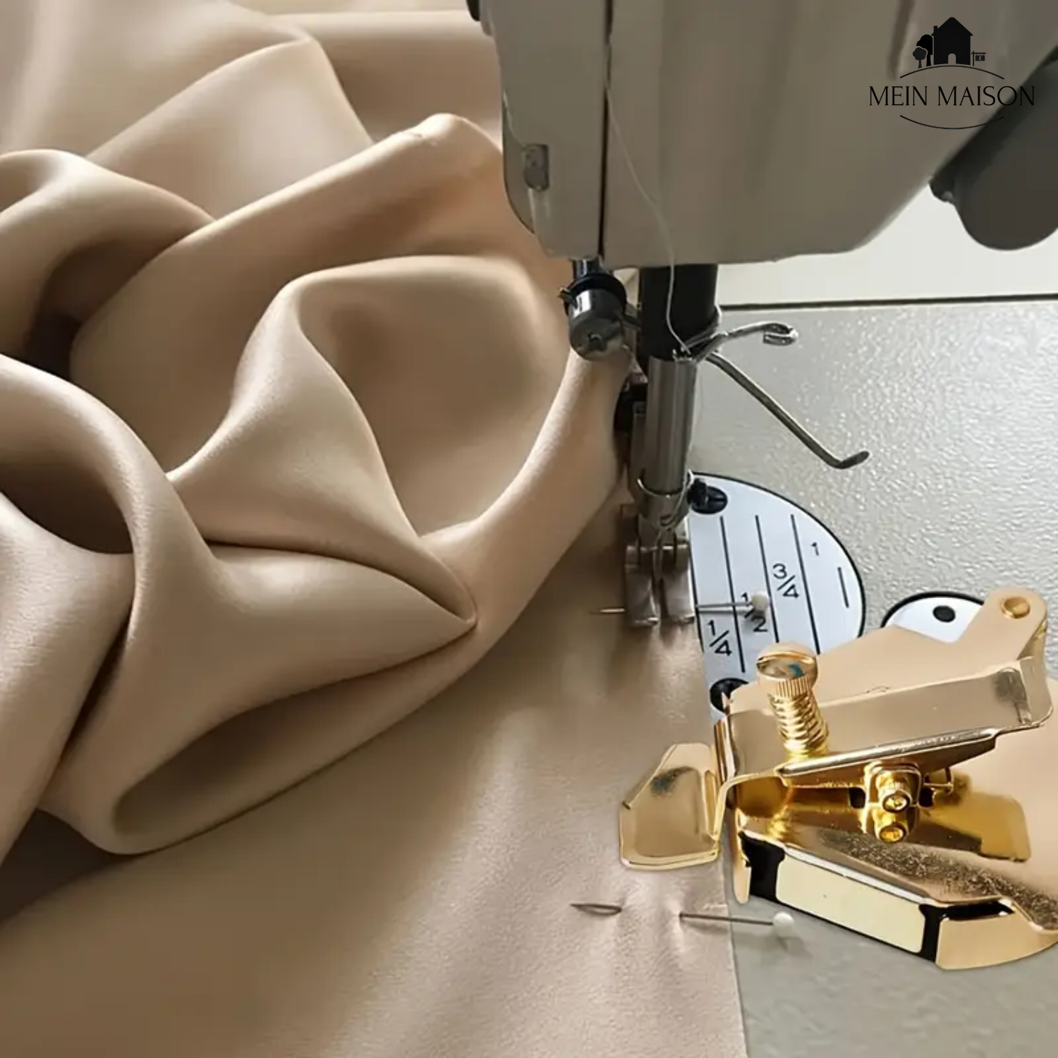 ✔️ Styrhjul: Tyget glider enkelt – för jämna sömmar utan dragning.
