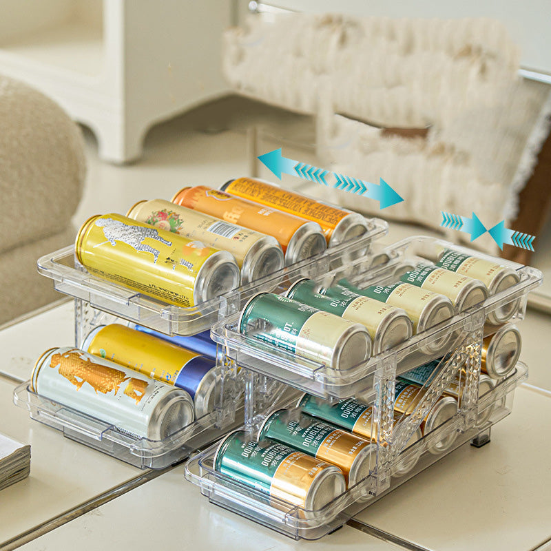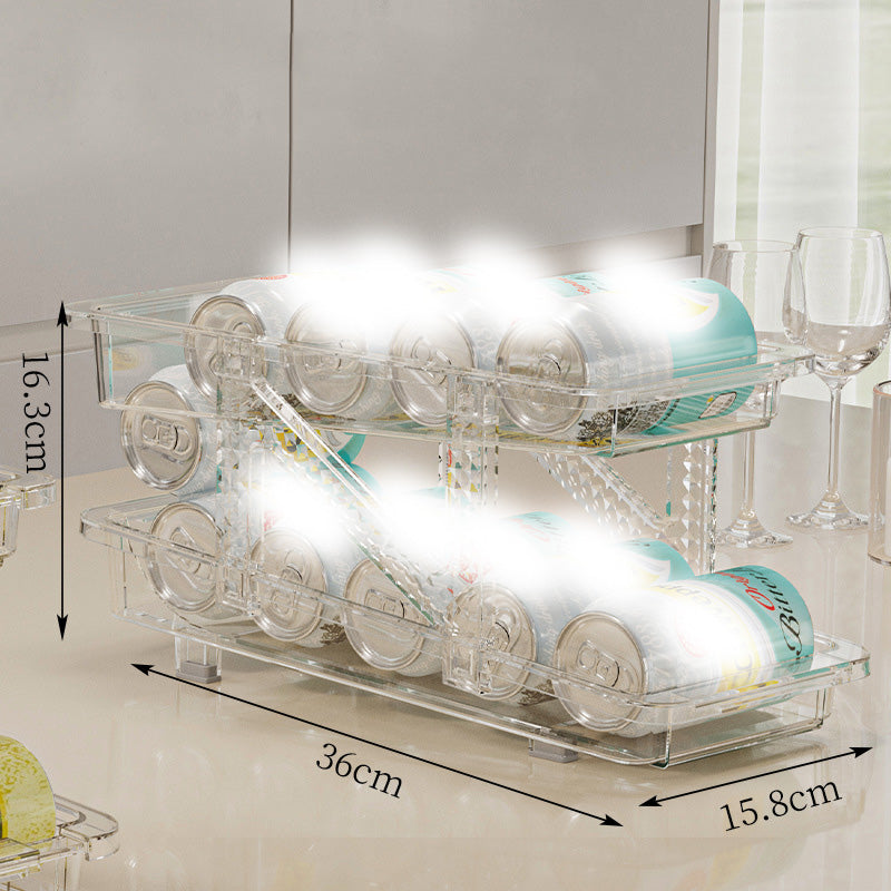 Denna lösning ger ordning & fräschör! Med denna smarta burkorganisatör tillhör överfulla kylskåp det förflutna. Burkarna rullar automatiskt framåt för snabb åtkomst, bättre luftcirkulation och alltid perfekt kylda drycker.