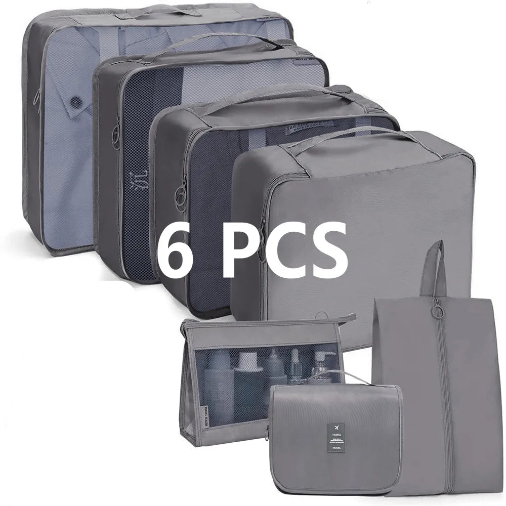 📌 6-delat organisationsverktyg – Innehåller kuber för kläder, underkläder, skor och accessoarer – idealiskt anpassade för maximal utnyttjande av utrymme.