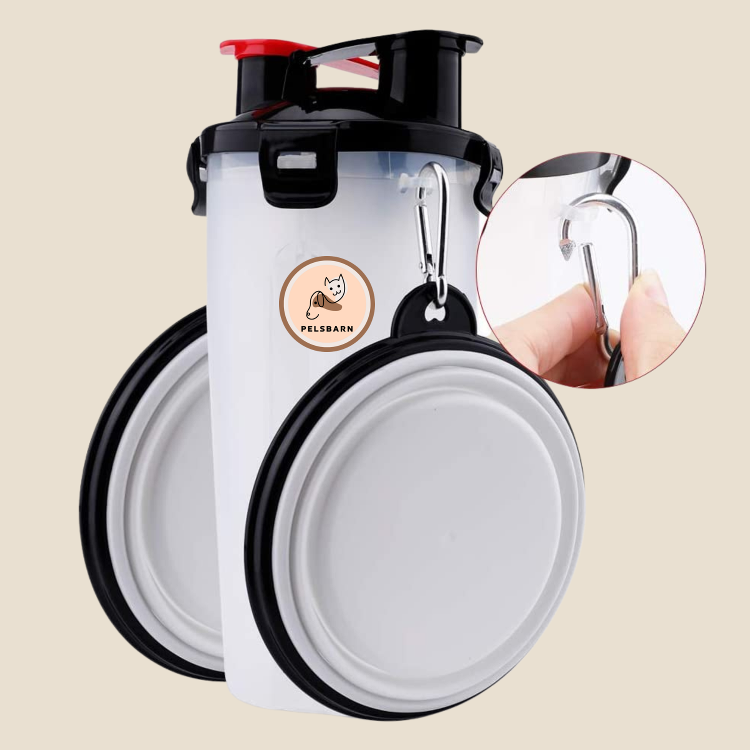 📌 2-i-1 Design: Integrerat fack för torrfoder (150 ml) plus vattenbehållare (valfritt 350 ml eller 550 ml) – idealiskt för korta och långa utflykter.