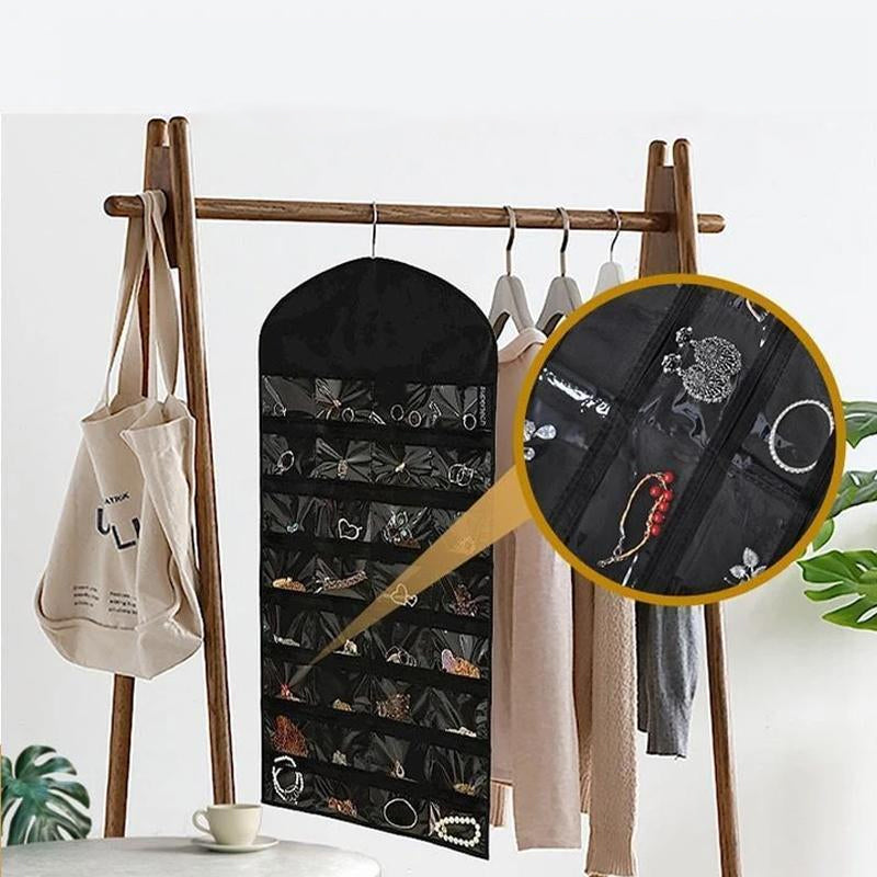 Denna smyckesorganisation ger översikt och ordning – med 32 fickor och 18 krokar för alla dina skatter!