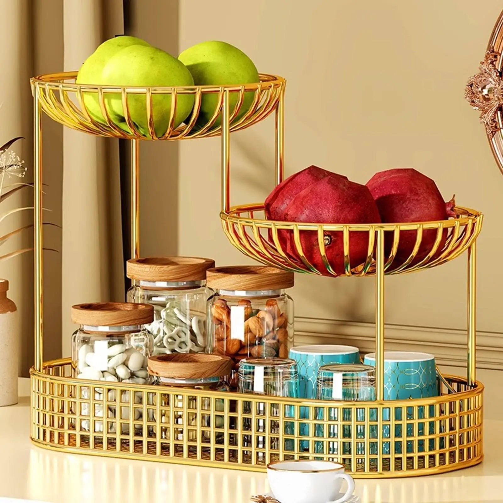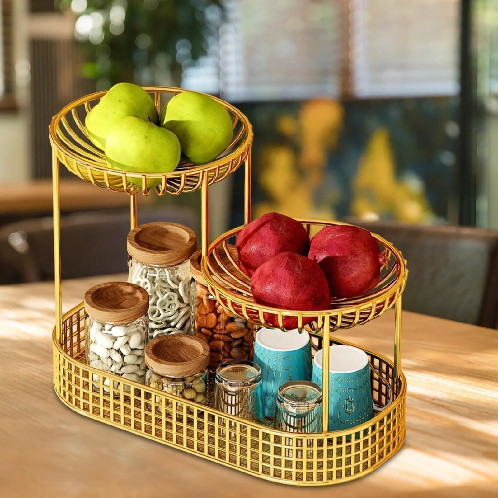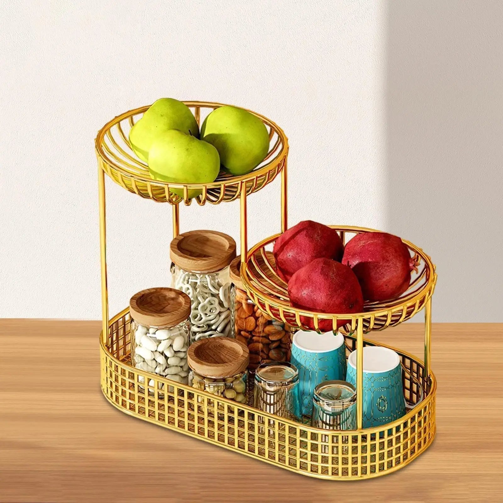 Varje nivå rymmer flera sorter av frukt eller bröd – idealiskt för dagligt bruk.