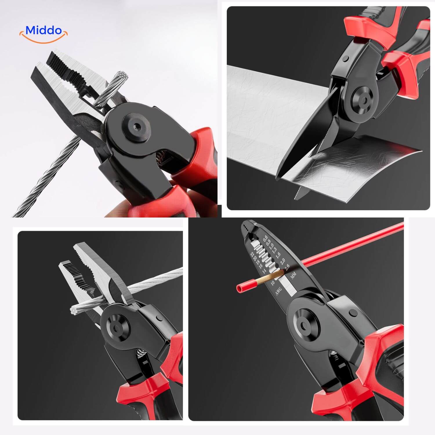 Carvallo Pro är din allt-i-ett-lösning för verkstad, hushåll och på språng. Denna smarta 6-i-1 verktygskombination förenar spärrnyckel, avbitartång, skruvtving, avisoleringstång & co. – allt i en kompakt, robust design.