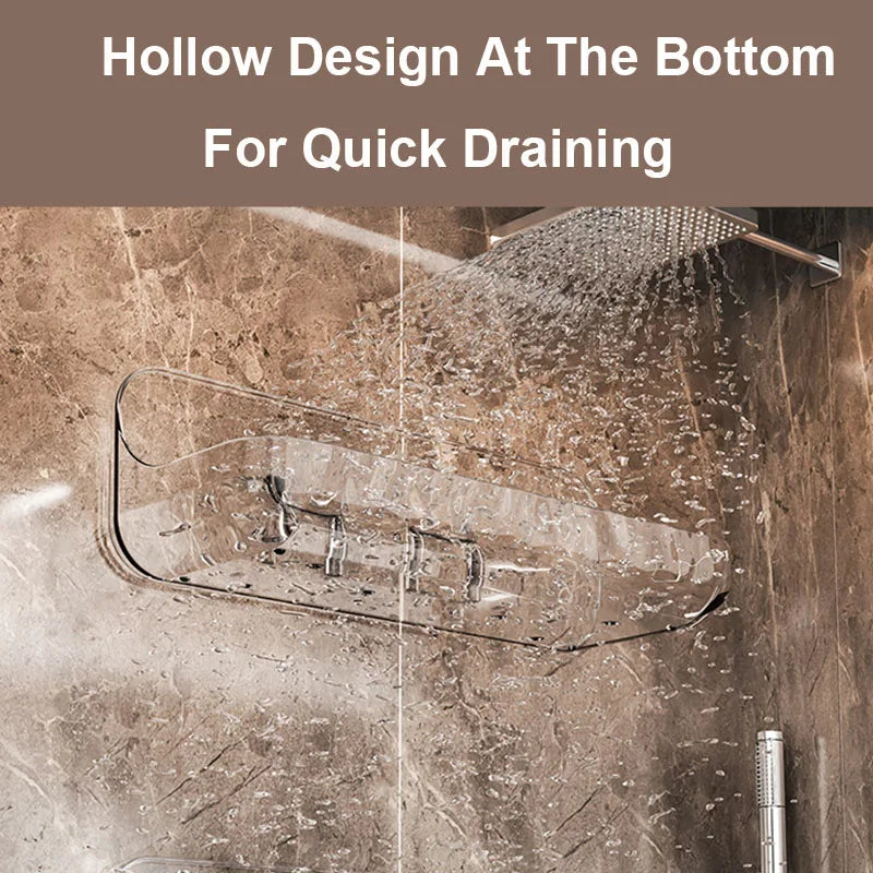 Carvallo Pro | Akryl-badrumshylla utan borrning | Väggmonterad duschhylla | Kosmetik- & schampo-hållare | Transparent | 12×9×8 cm / 24×9×8 cm