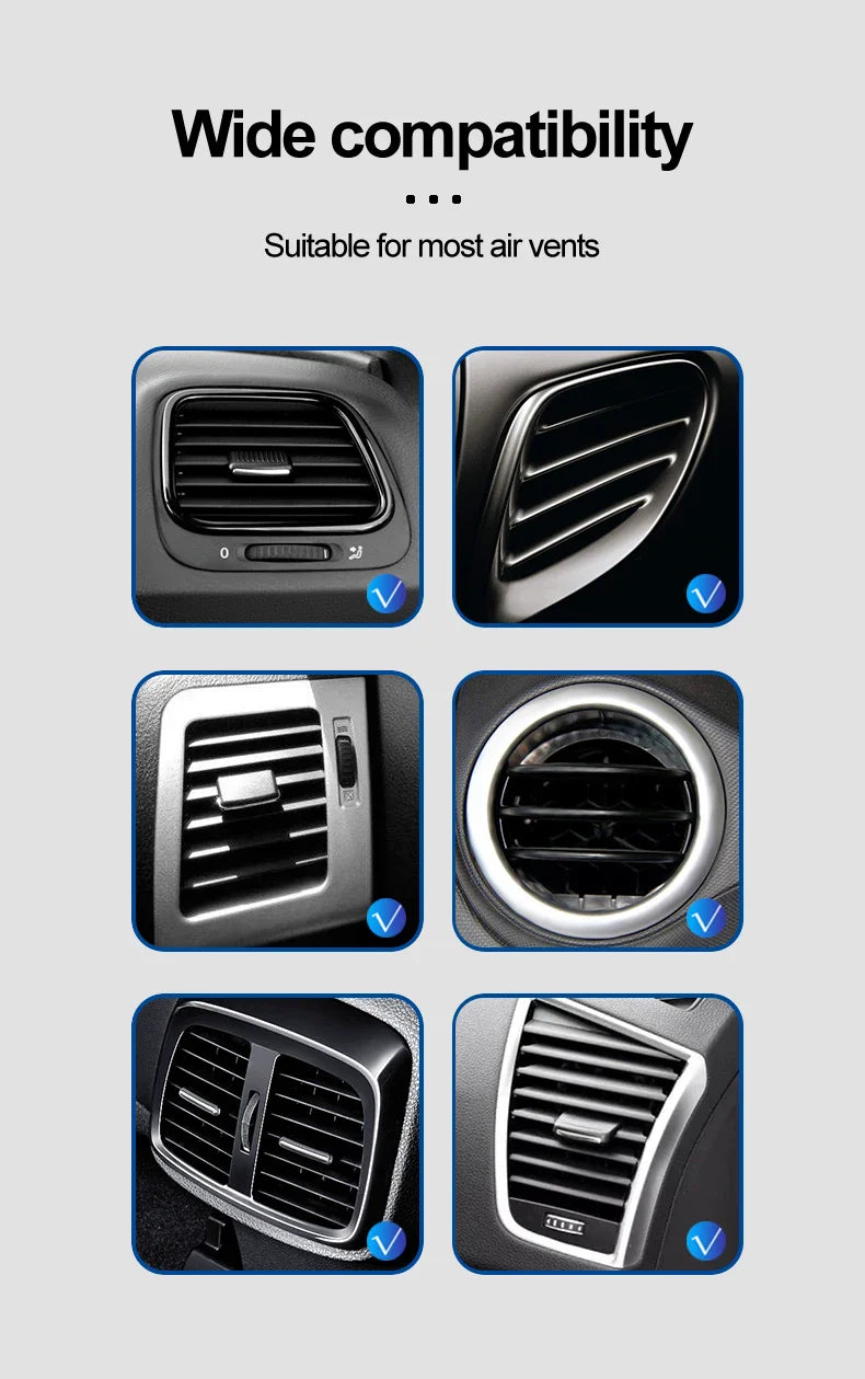 📌 Säker fästning: Den förbättrade ventilationsglidsklämman håller din smartphone på plats även vid guppig körning – utan att vobbla eller glida av.