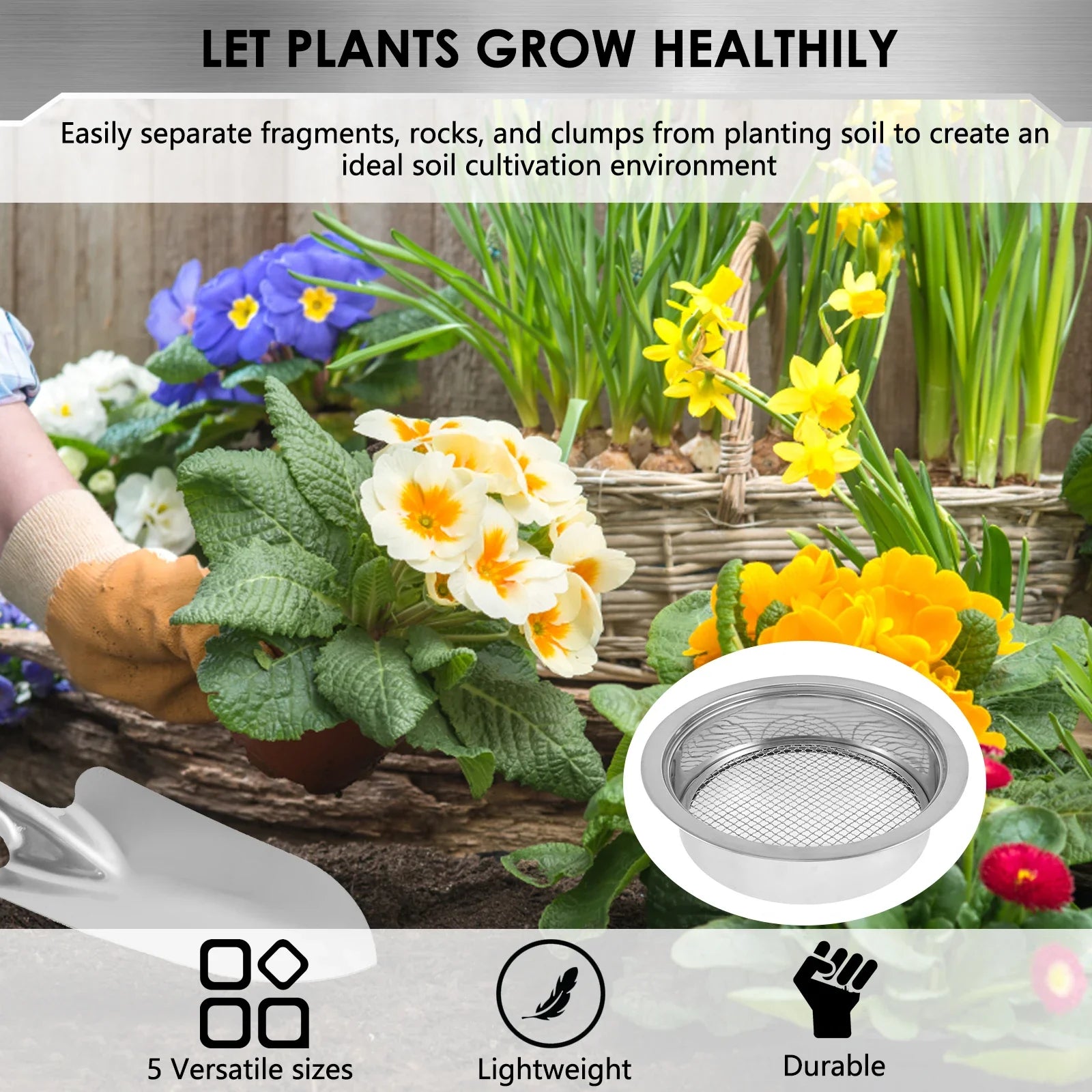 Carvallo Pro | Edelstahl Bodensieb-Set | 5 Wechselbare Siebe (1–12 mm) | Ø 24 cm | Für Erde, Sand & Kompost | Inkl. Schaufel