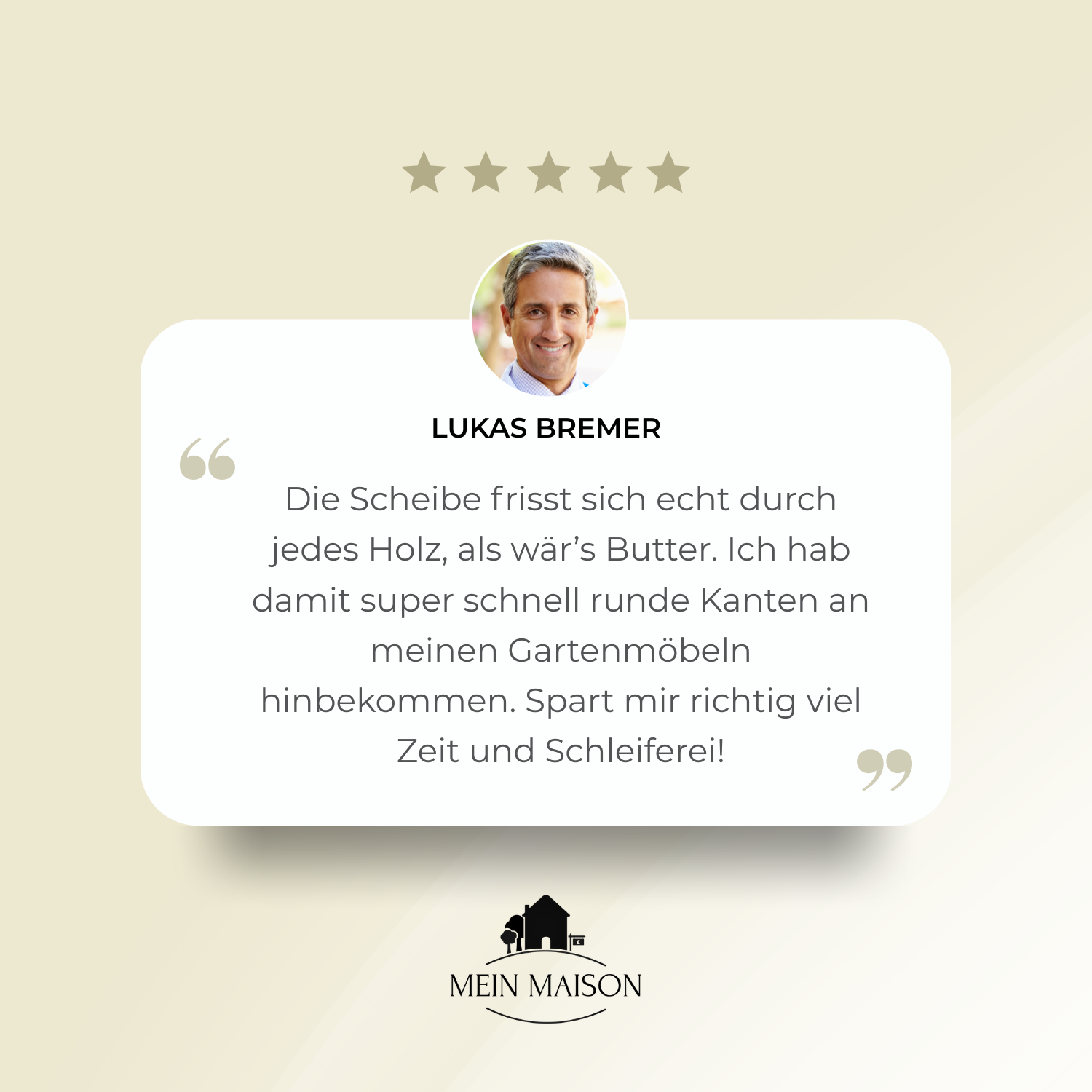 Med denna vinkelslipsskiva formar du varje trästycke blixtsnabbt – oavsett runda kanter, djupa snitt eller fina kurvor. Sätt bara på den på din vinkelslipare och sätt igång.