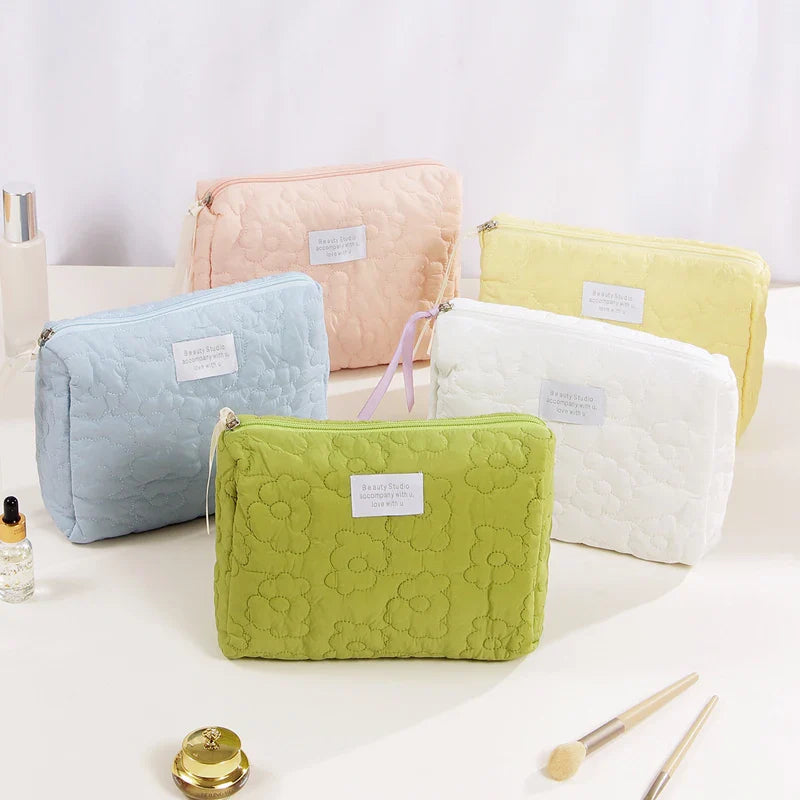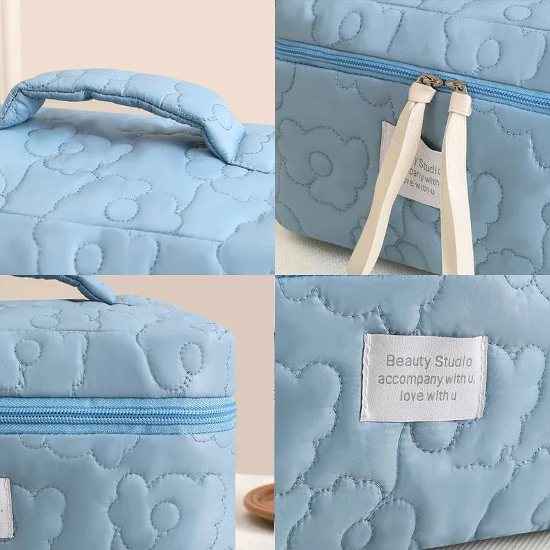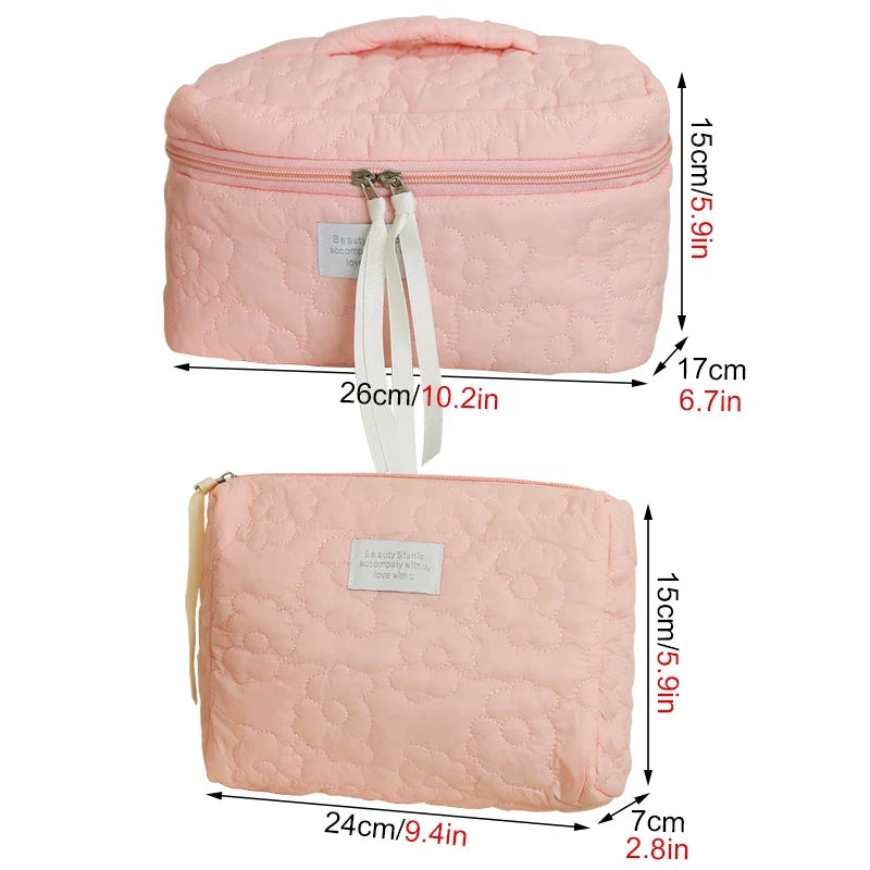 Carvallo kosmetikväska kombinerar ett feminint blommönster med genomtänkt funktionalitet. Den vadderade bomullsväskan är perfekt för resor, vardag eller gymmet – lätt, hållbar och med smart inredning för smink, skönhetsprodukter och mer.