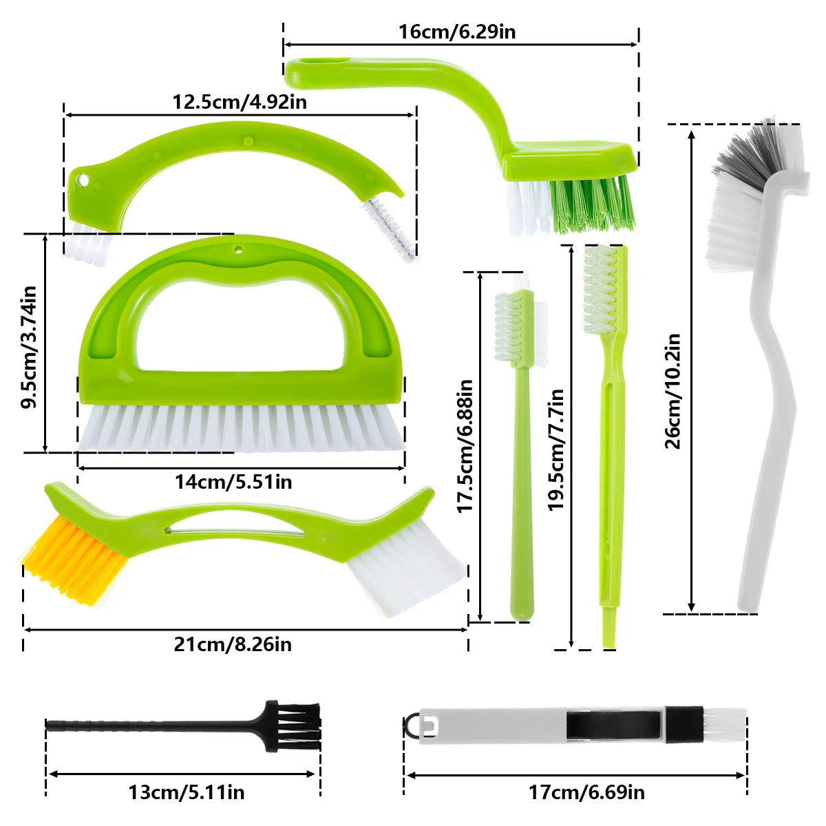 Carvallo Rengöringsborstar Set | 9-pack Fog- & Spårborstar | Ergonomisk & Återanvändbar | För Bad, Kök & Fönster