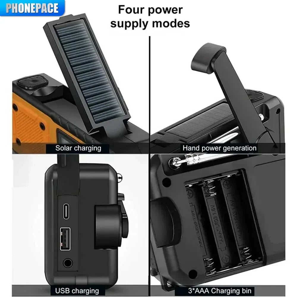 📌 4-faldig energiförsörjning: Handvev, sol, USB-C & AAA-batterier – maximal flexibilitet i varje situation.