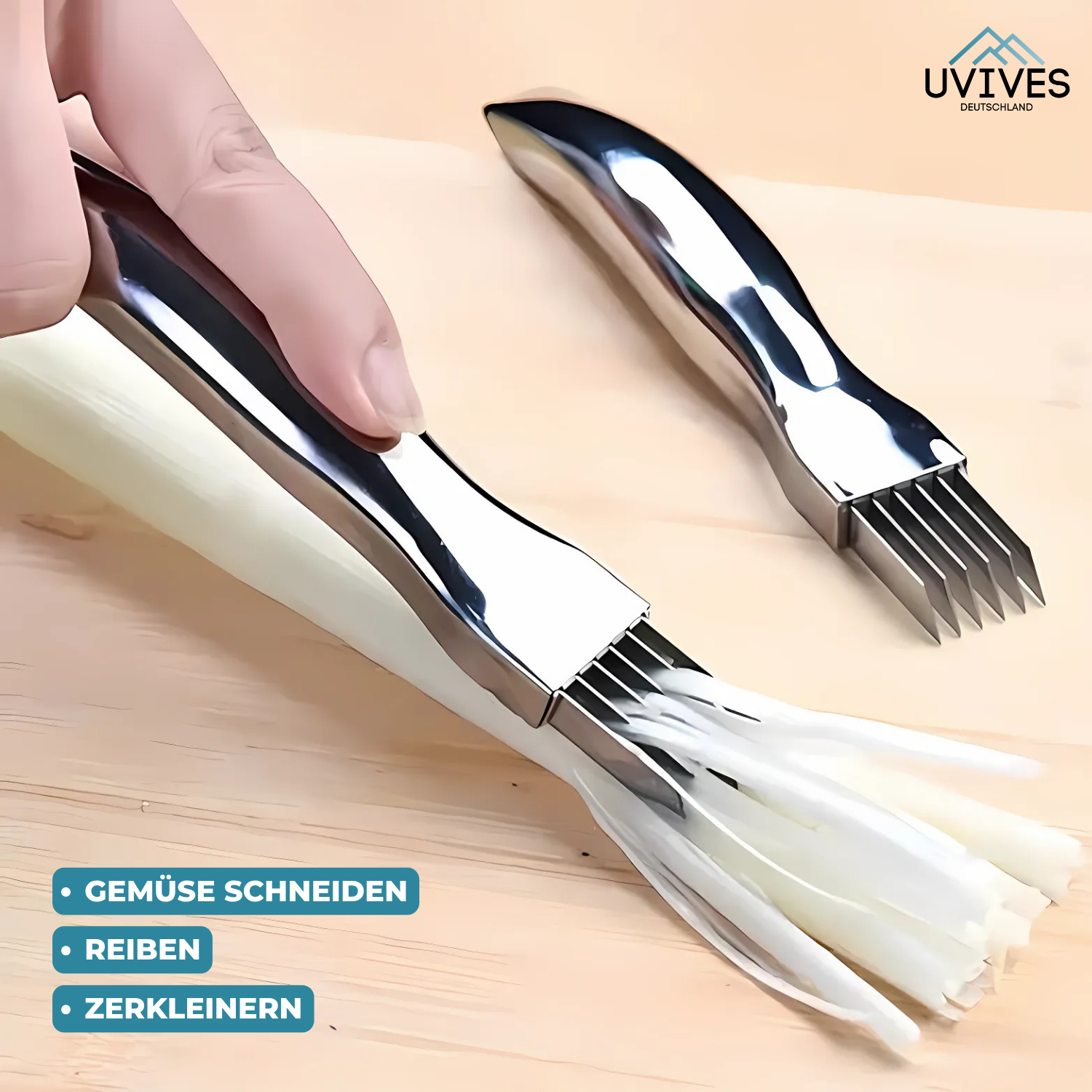 - ✓ Mångsidiga användningsområden – Oavsett om det är lök, morötter eller potatis, Carvallo skär och river allt precist och snabbt.