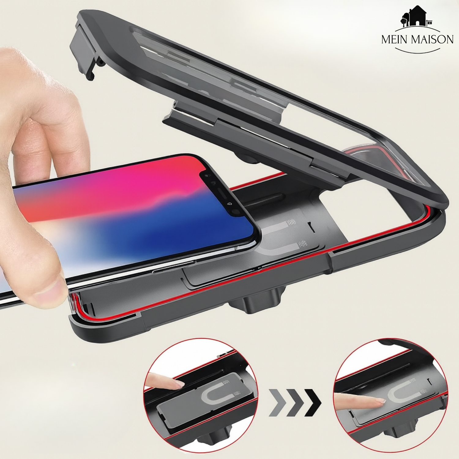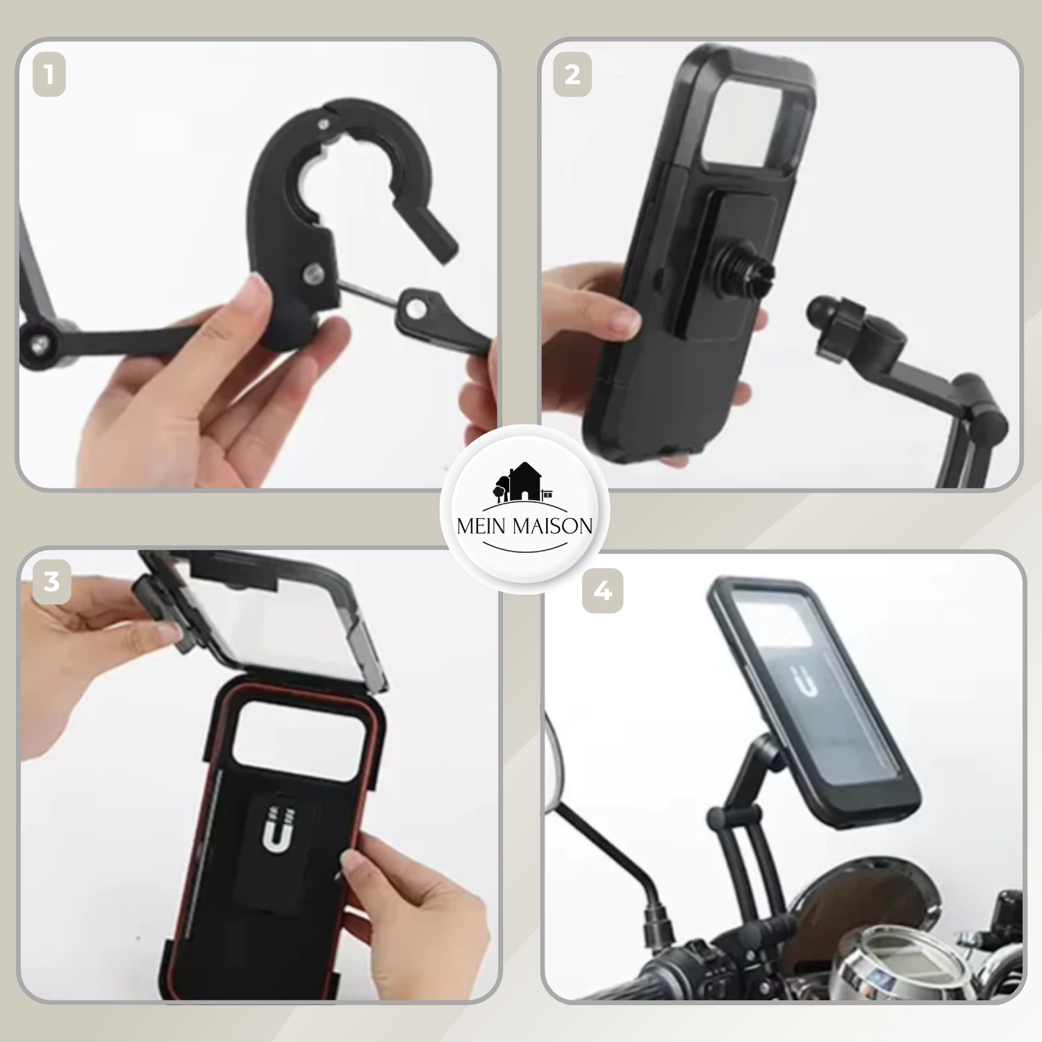 Carvallo skyddar din smartphone från regn, stötar och repor – och håller den samtidigt alltid lättillgänglig. Tack vare den robusta fästet med metallaxel, silikon dämpning och 360°-rotation anpassar sig fästet perfekt efter din körstil. Perfekt för pendlare, utomhusäventyr och alla som vill förbli uppkopplade på språng.