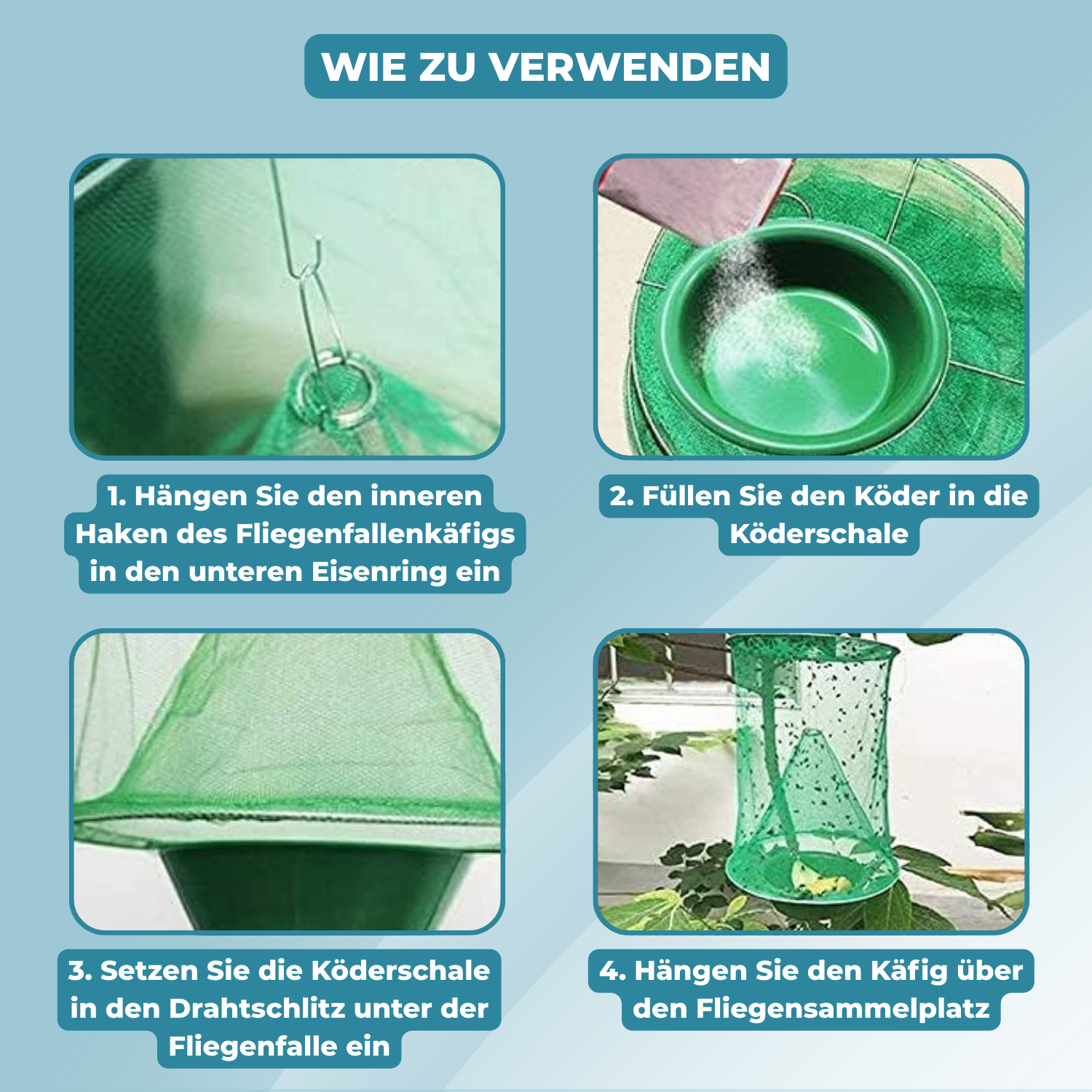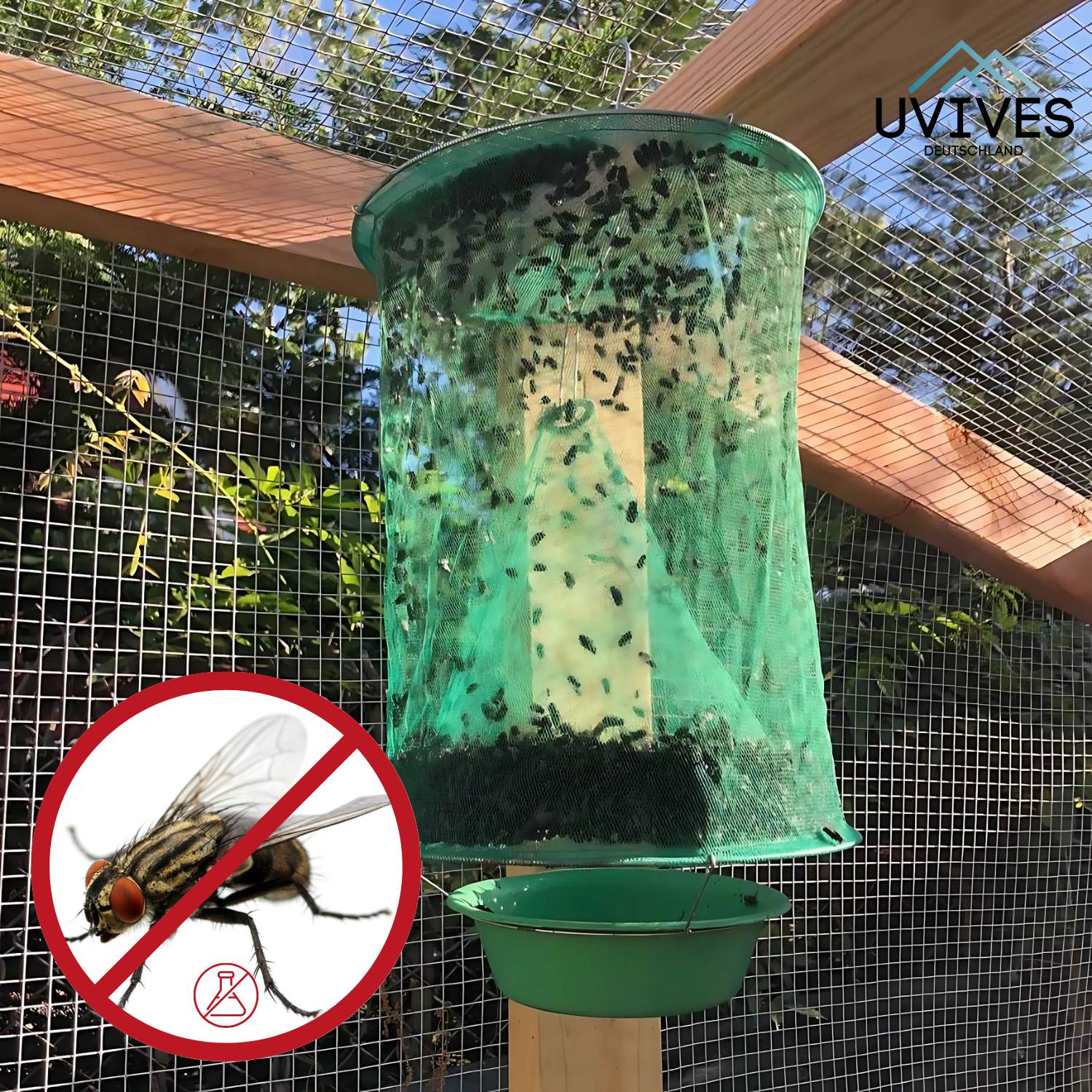 ✔️ Fångar hundratals flugor per dag: Genom den speciella designen kommer de in – men inte ut igen.