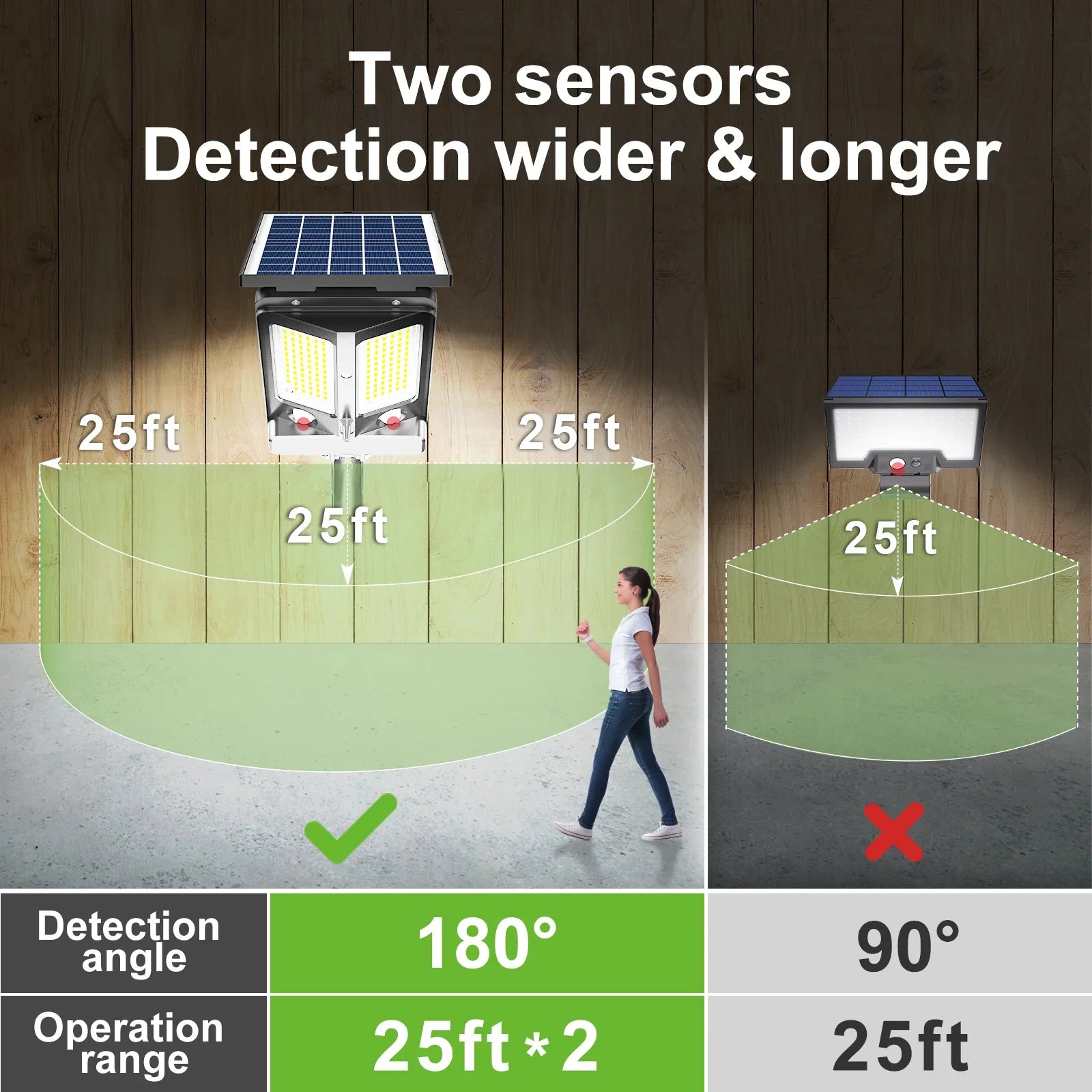 📌 Rörelsedetektering med brett omfång – Upptäcker rörelser på upp till 30 m avstånd och aktiverar automatiskt starkt ljus – perfekt för uppfarter, gårdar och trädgårdsgångar.