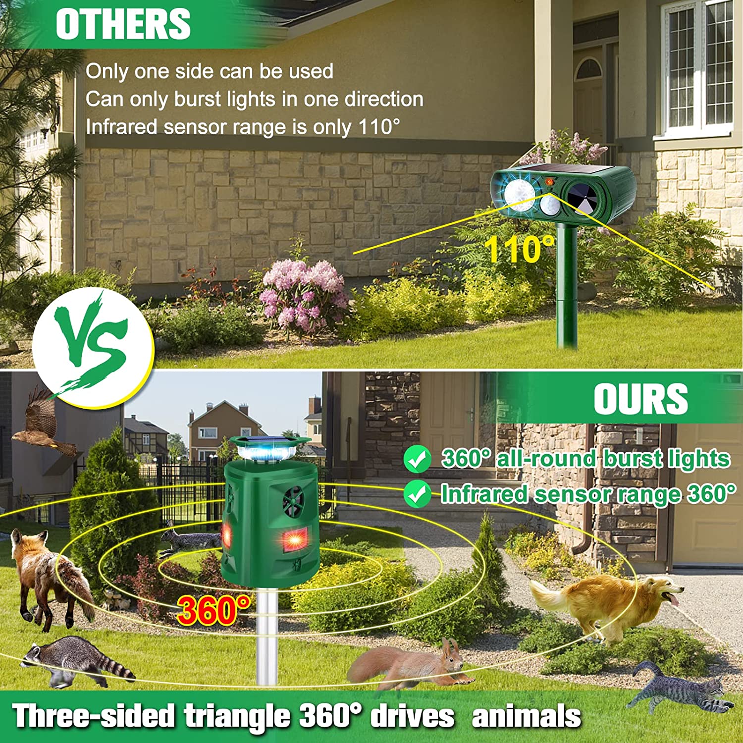 ✨ 5 intelligenta lägen för riktad djuravskräckning: Olika ljud, ultraljudsfrekvenser & blixtljus skrämmer bort katter, hundar, rävar, fåglar, tvättbjörnar m.fl.