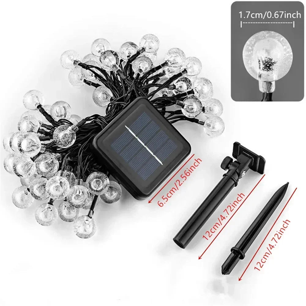 Carvallo Solar Ljusserie med kristallkulor | 20/50/100 LEDs | 8 lägen | Vattentålig & utomhusvänlig