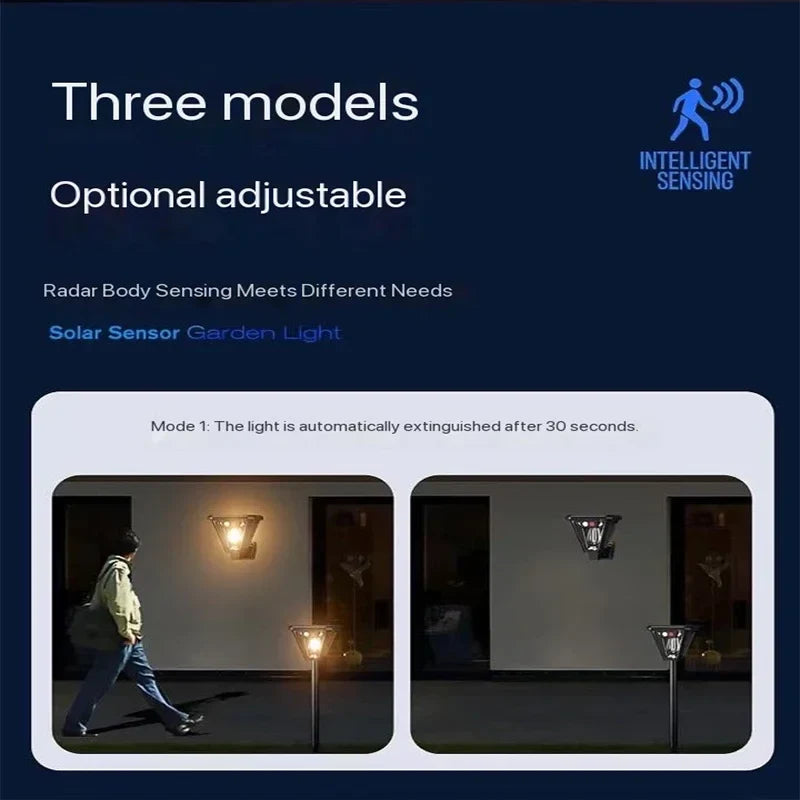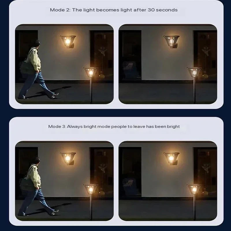 📌 Intelligent belysning – Välj mellan rörelsesensor, skymningssensor eller konstant ljus – passar för varje situation i trädgården eller entrén.