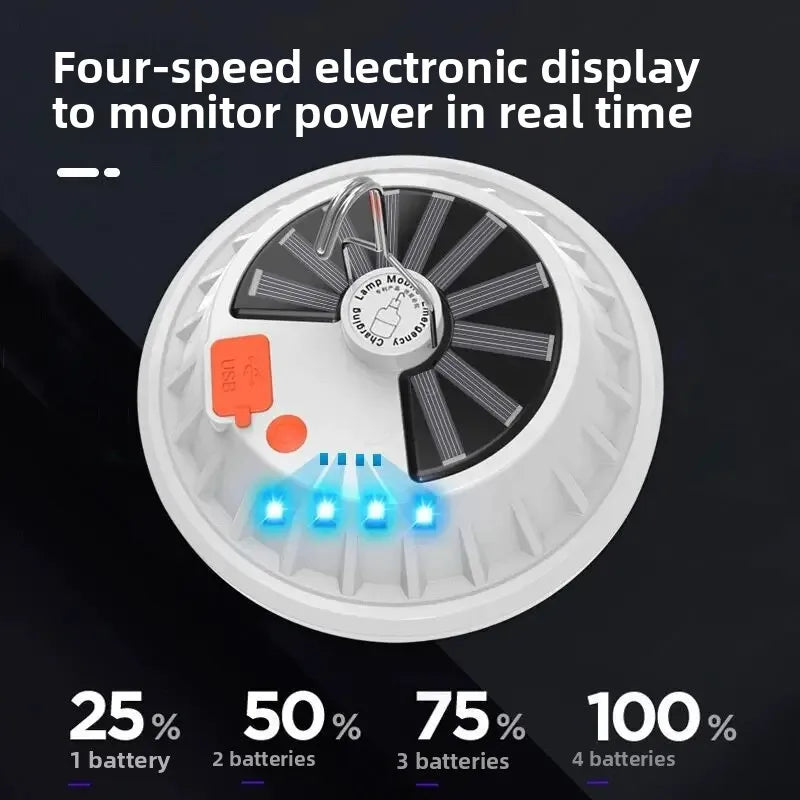 Carvallo Solar UFO-Campinglampa | Med fjärrkontroll | Uppladdningsbar & Bärbar | För utomhus, nödsituationer & nattmarknader