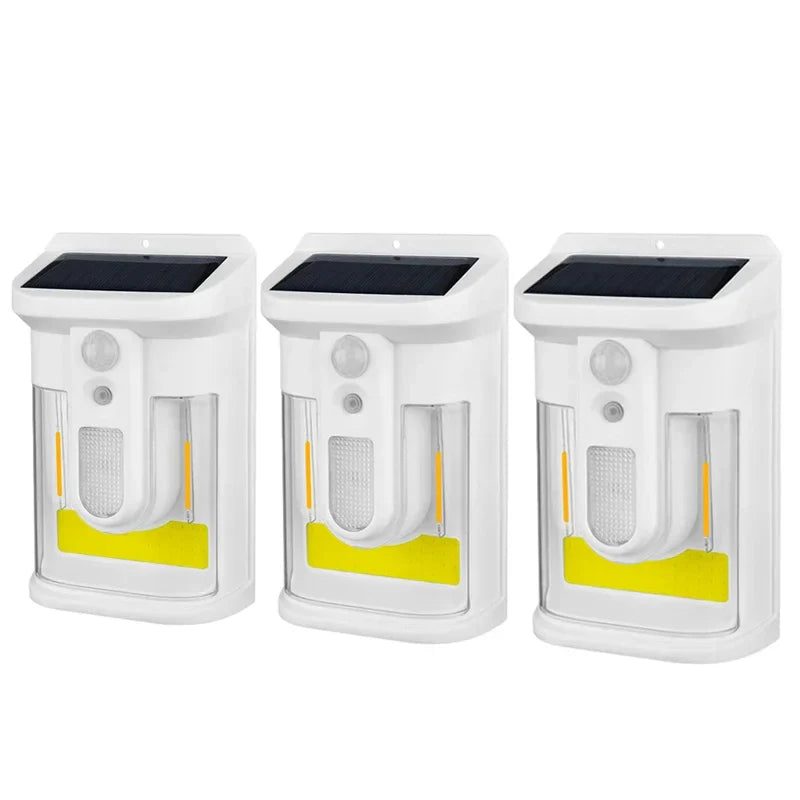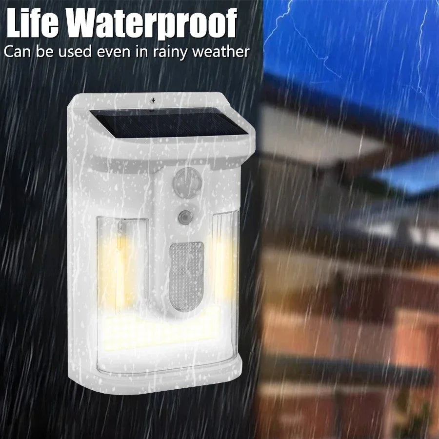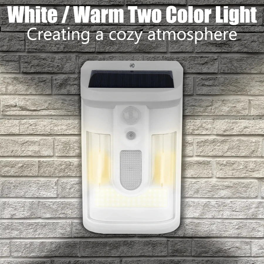 Carvallo Solar Vägglampa med Rörelsesensor | 3 Ljuslägen | IP65 Vattentålig | Varmt Flammigt Ljus för Trädgård & Gårdsplan