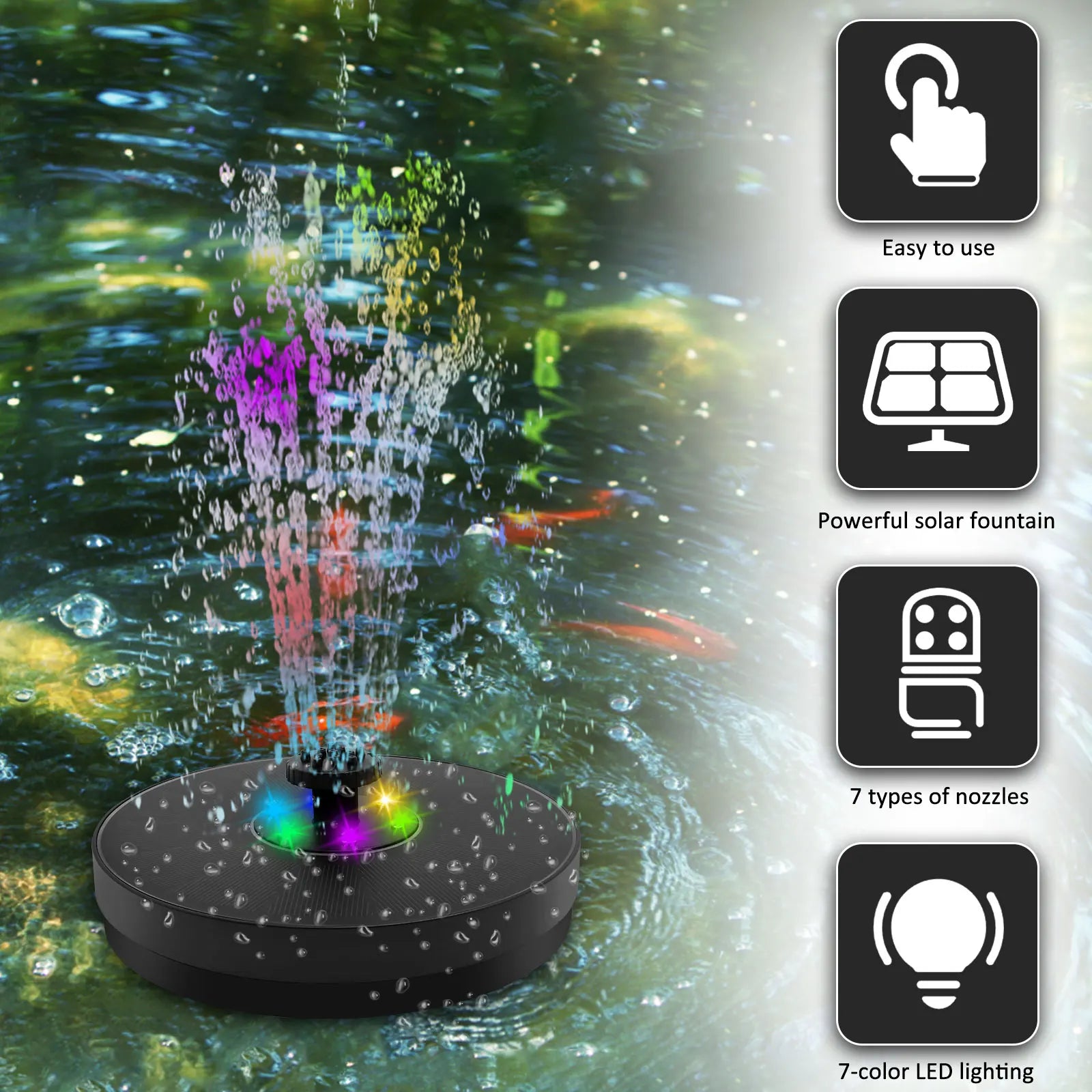 Carvallo Solar Spring | 3W Solbrunn med LED Färgspel | Upp till 60 cm Fontänhöjd | 7 Düsenaufsätze