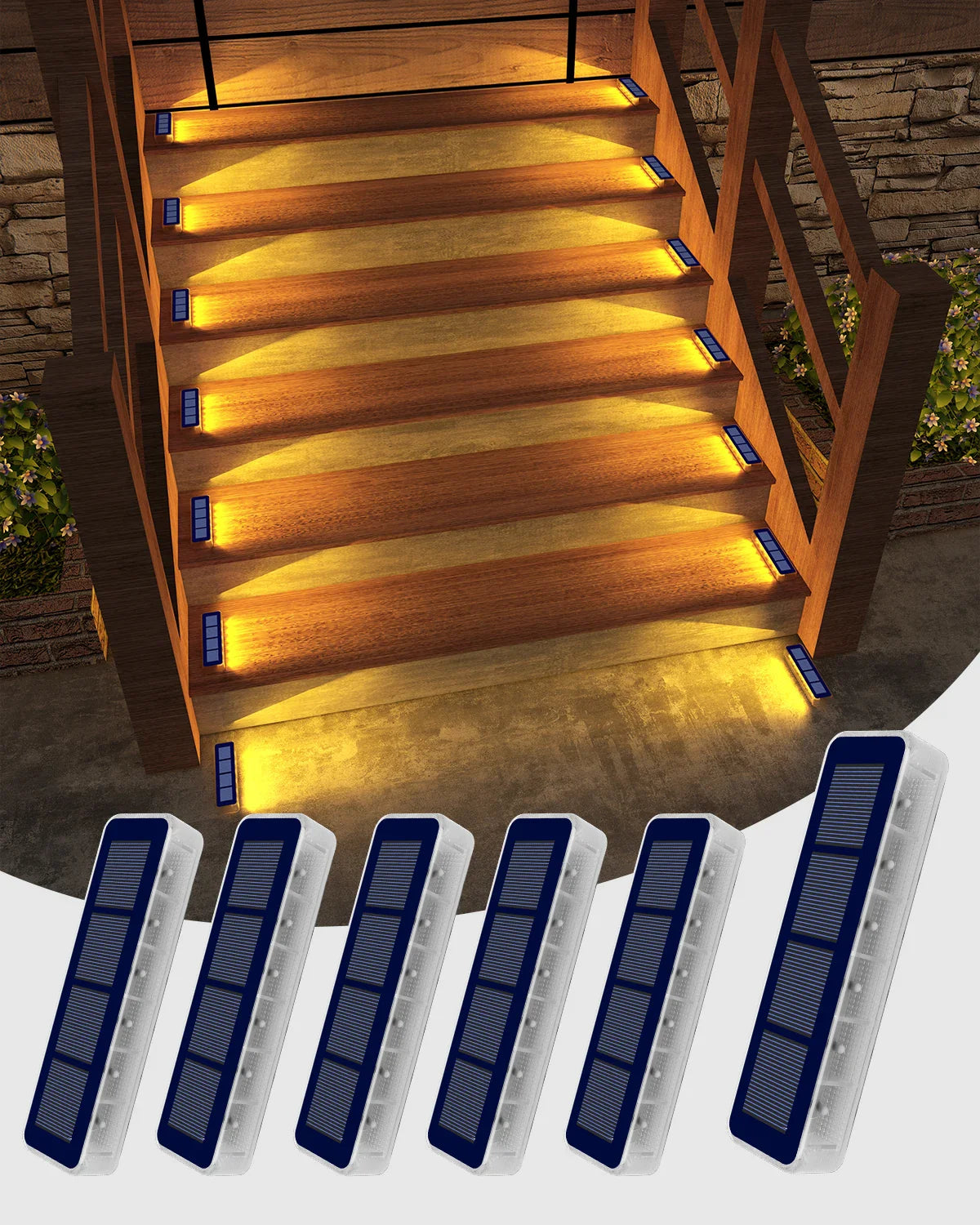 Carvallo StepLine Solar Golvljus 6-pack | Varmvit | IP68 Vattentät | LED-Trapp- & Vägbelysning | För Utomhusområden