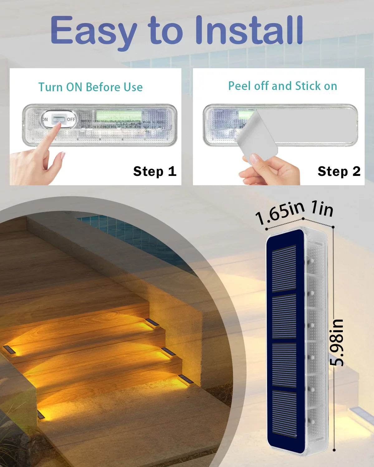 🎨 Mångsidig & platt monterbar – Perfekt för trappsteg, gångvägar eller däck – inklusive självhäftande kuddar för snabb installation.