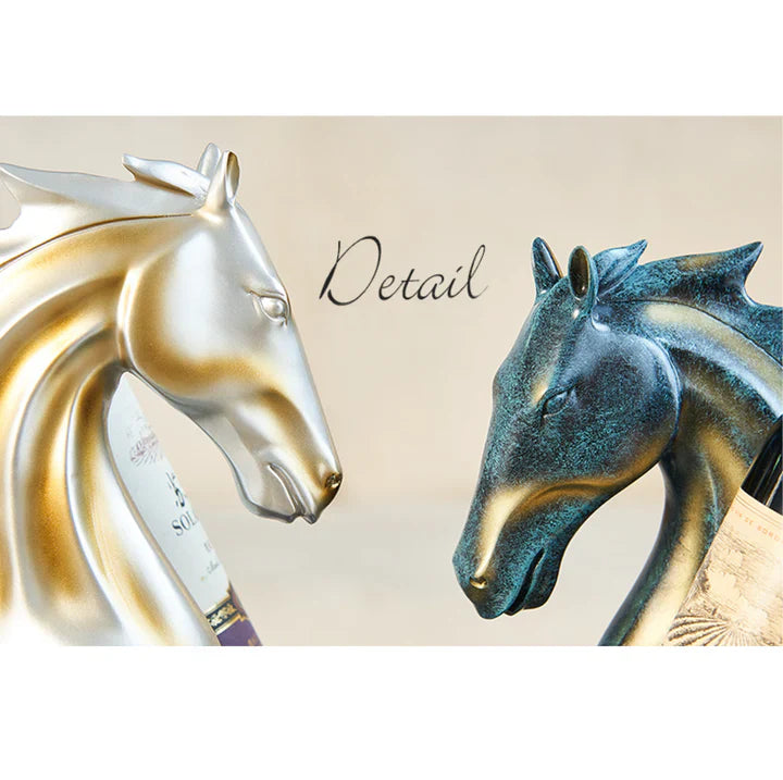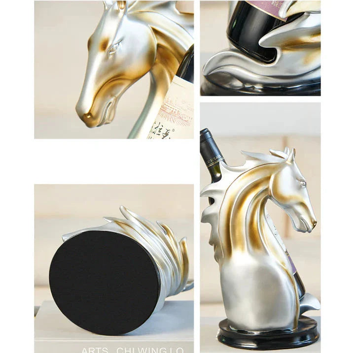 Visa din favoritflaska vin med stil med denna utsökta flaskhållare för hästvin. Med en majestätisk hästdesign, ger dess djärva guld- eller slående blå finish ett lyxigt inslag till vilket rum som helst. Detta unika stycke är perfekt för att förbättra din hemma bar eller matbord och lämna ett bestående intryck på gästerna.