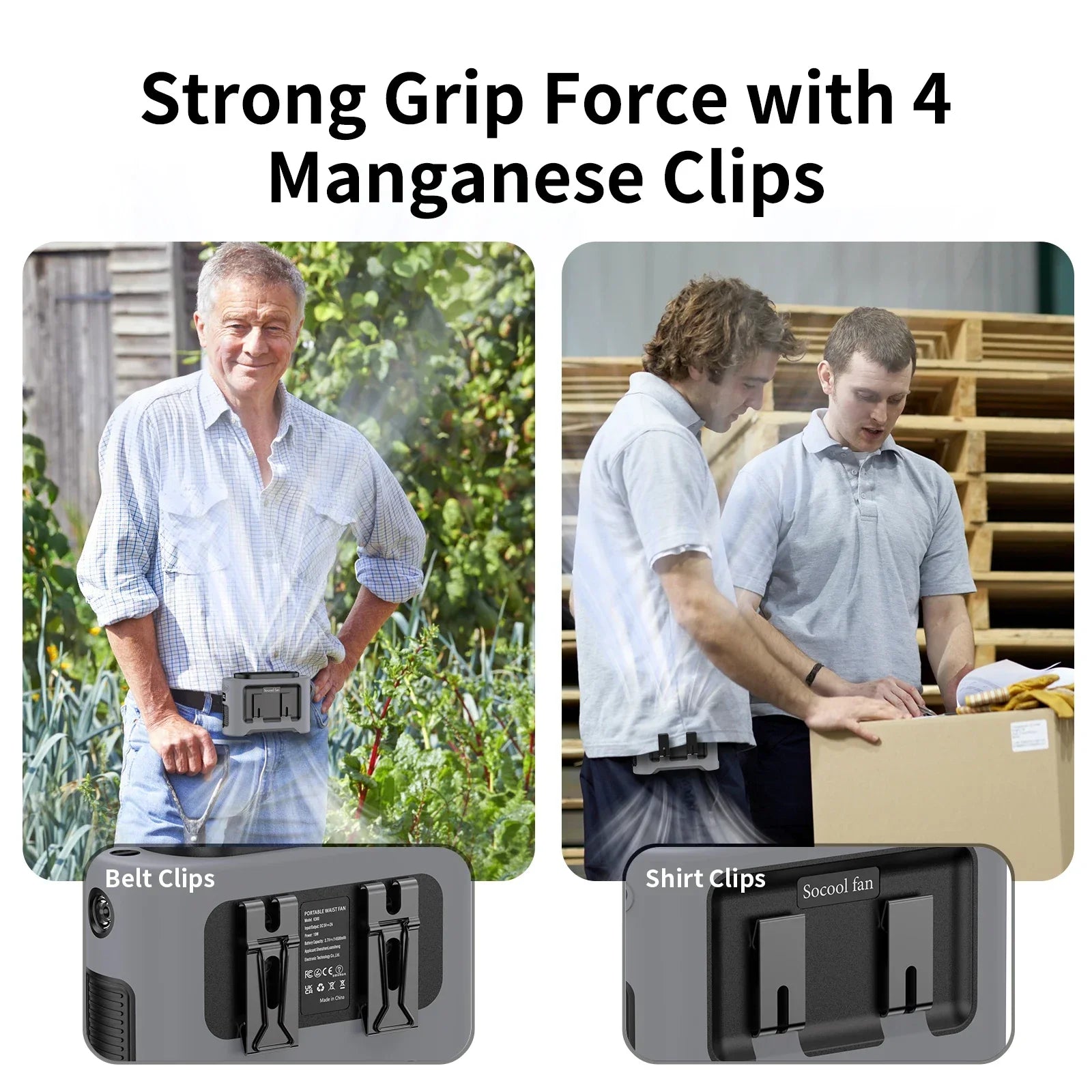 Carvallo StormClip Bärbar Utomhus-Bältesfläkt 2025 | 5-stegs Turbo-Vind | 360° Vridklipp | Powerbank & LED-ljus