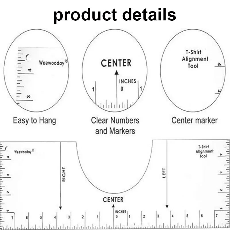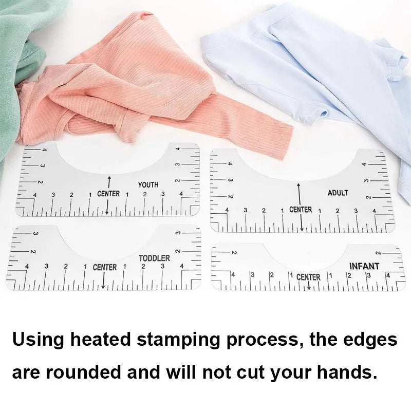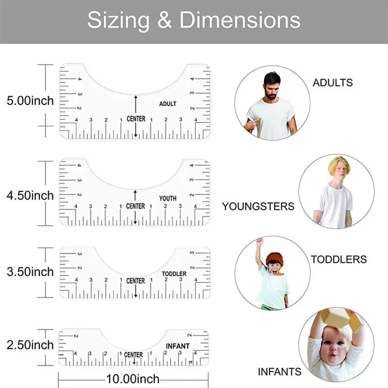Carvallo T-Shirt Justeringslinjaler i set | 4/8 styck | Flexibelt PVC-mätsverktyg för textiltryck & sömnadsarbeten | För vuxna & barnstorlekar