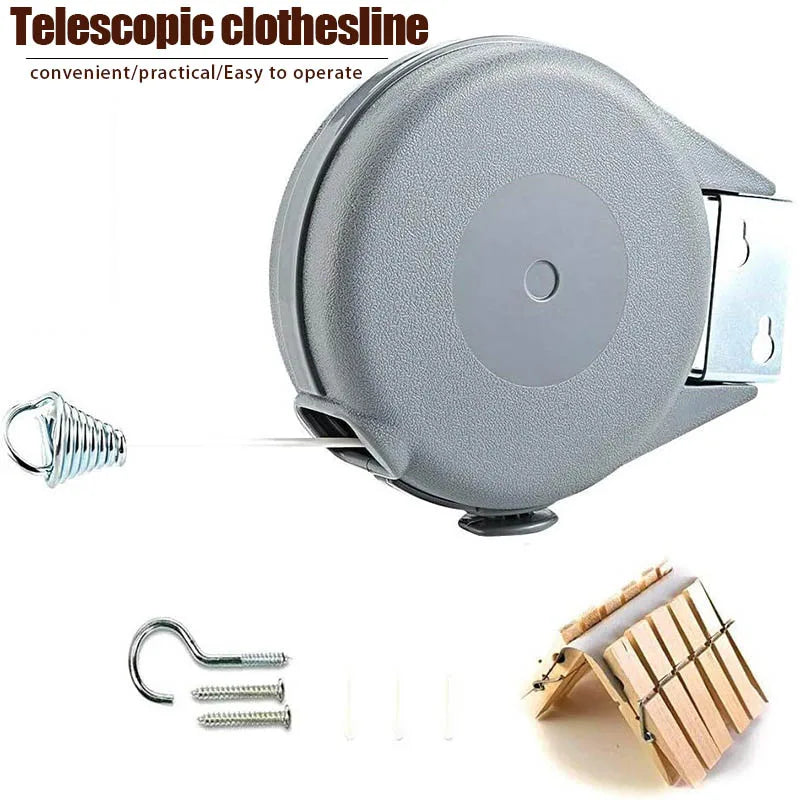 Carvallo Teleskop-tvättlinje | 12 Meter utdragbar tvättlina | Automatisk inrullning | För inomhus & utomhus