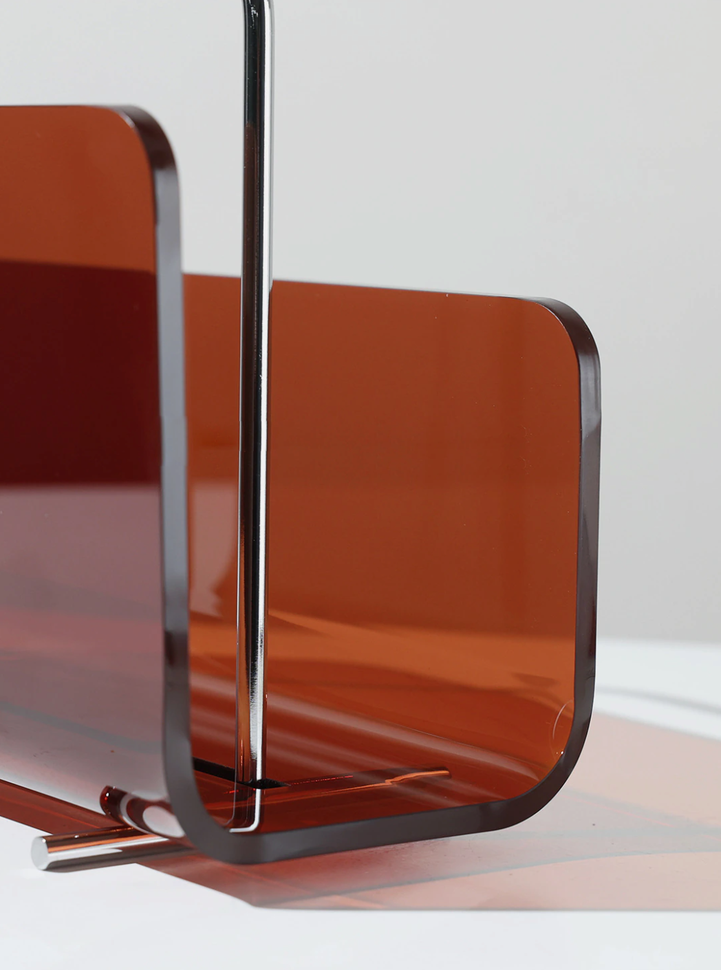 Bered ditt inre med den moderna och funktionella elegansen av Carvallo. Denna tidlösa magasinshylla och bärbara bokhylla kombinerar en slank design med högkvalitativa material, perfekt för stilfull organisering. De transparenta akrylpanelerna skapar en luftig och minimalistisk effekt, medan de djupt bruna accenterna tillför värme och sofistikering till ditt utrymme.