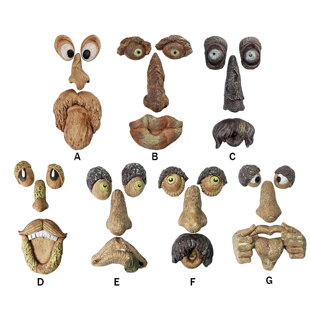 Carvallo Trädansikte Dekofigur | Handmålad harsskulptur | Rolig trädstamsfigur för trädgård & helgdagar | DIY-trädansikte