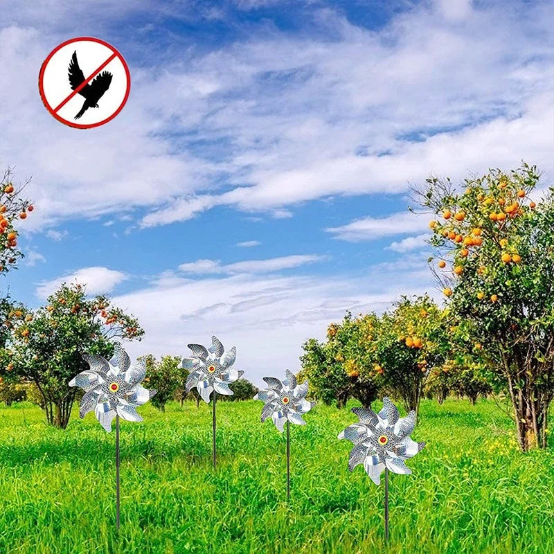 📌 Effektiv Carvallo: De glittrande vindsnurrevindbladen reflekterar solljuset och skapar ljusblixtar som skrämmer bort fåglar – helt utan skada eller stress för djuren.
