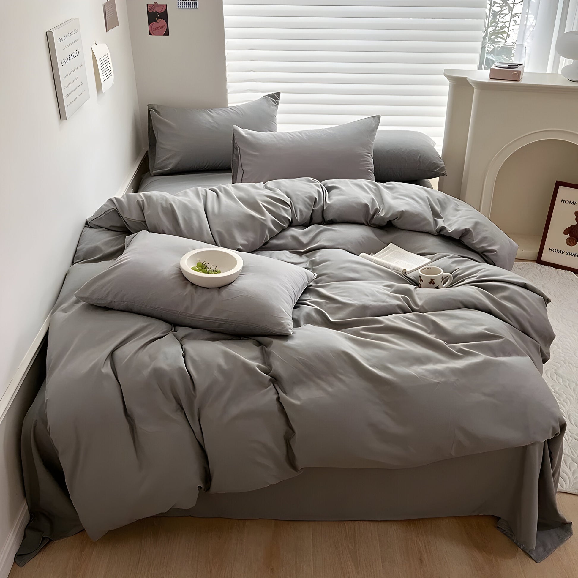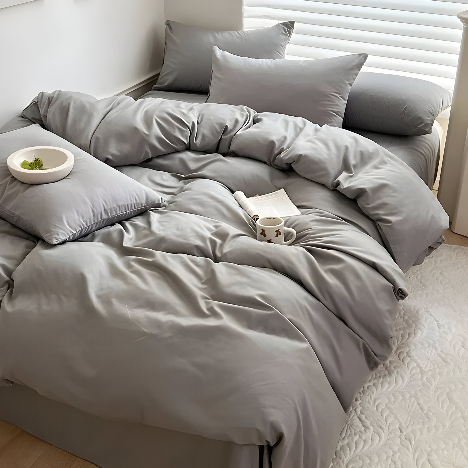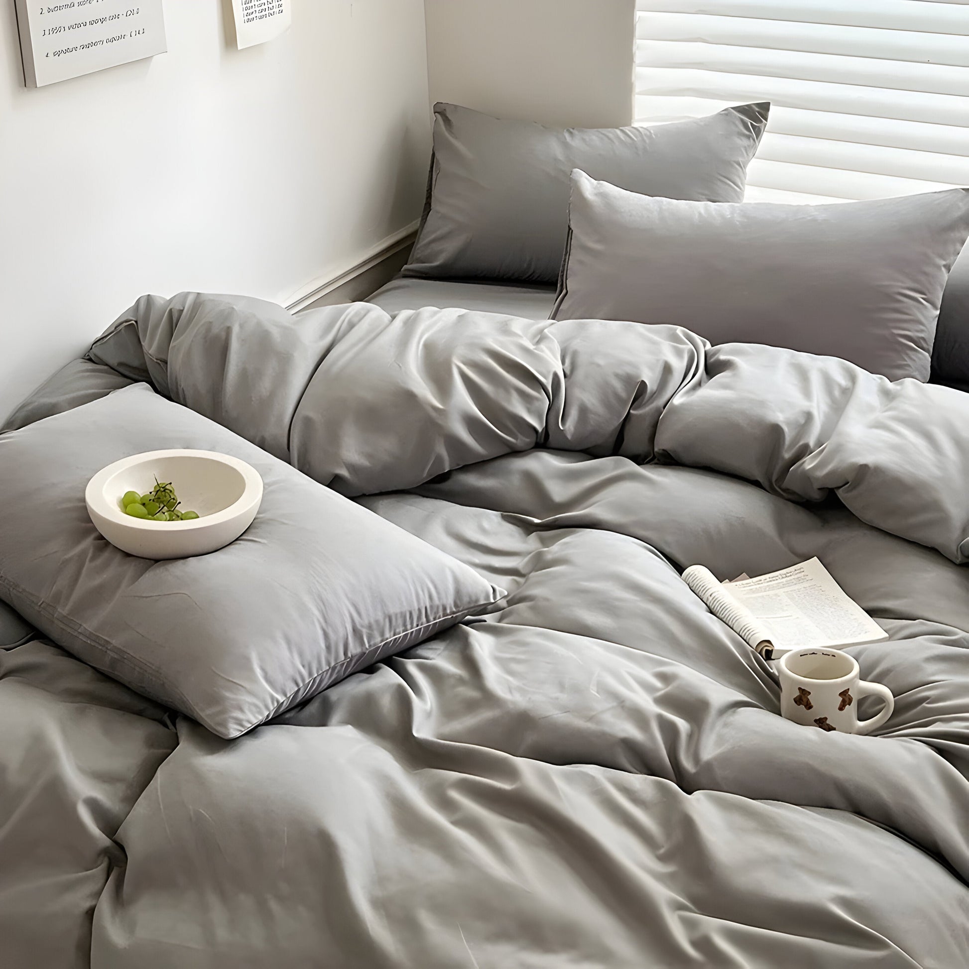 Med CloudHaven sängkläder förvandlar du ditt sovrum till en oasis av avkoppling. Tillverkad av 100 % högkvalitativ bomull, erbjuder detta set inte bara en behaglig känsla mot huden, utan också en tidlös elegans som passar in i varje inredning. Den enkla, enfärgade designen skapar en lugnt atmosfär och låter dig vakna fräsch varje morgon.