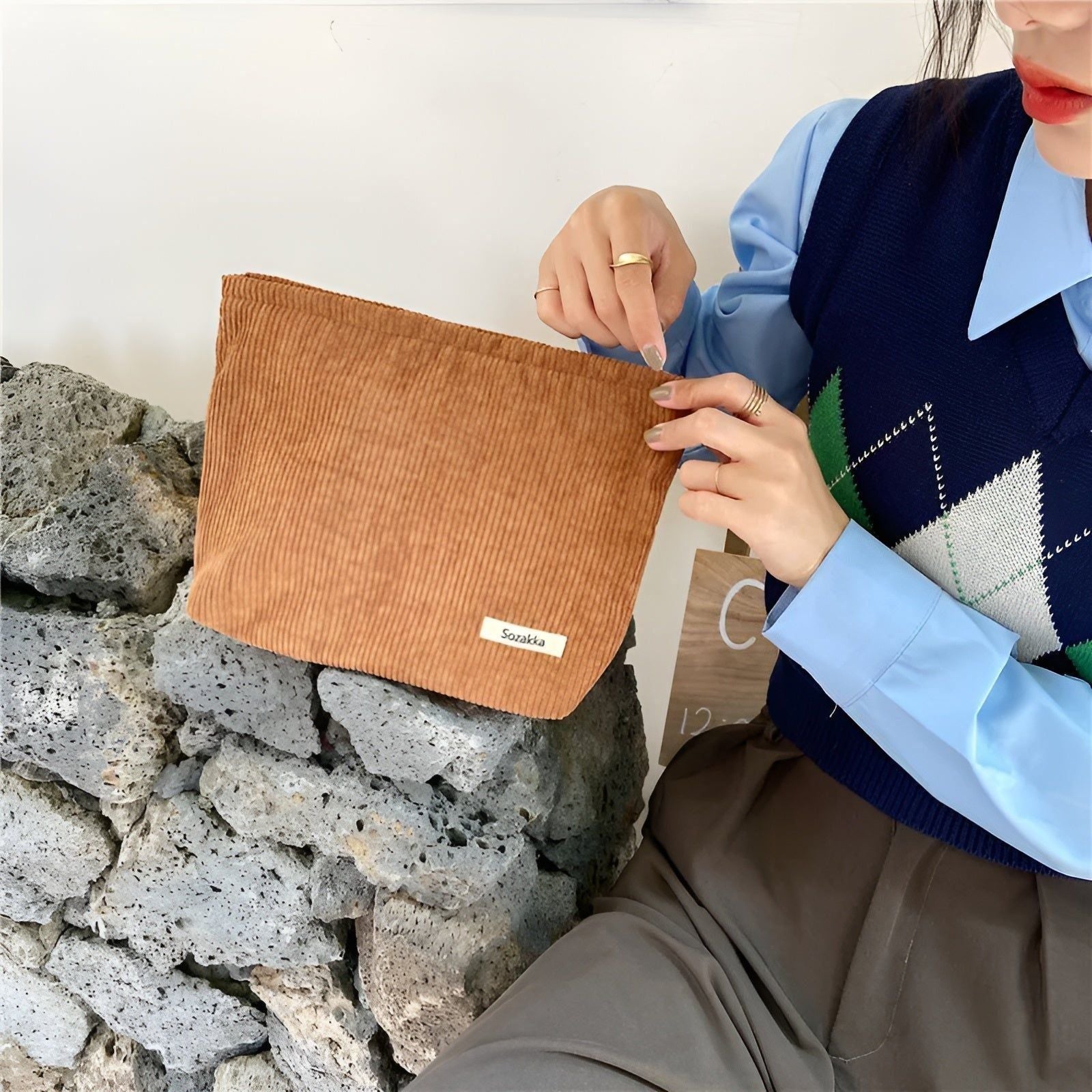 CorduroyGlam Bag - Kord Rymlig organiseringsväska för kosmetika
