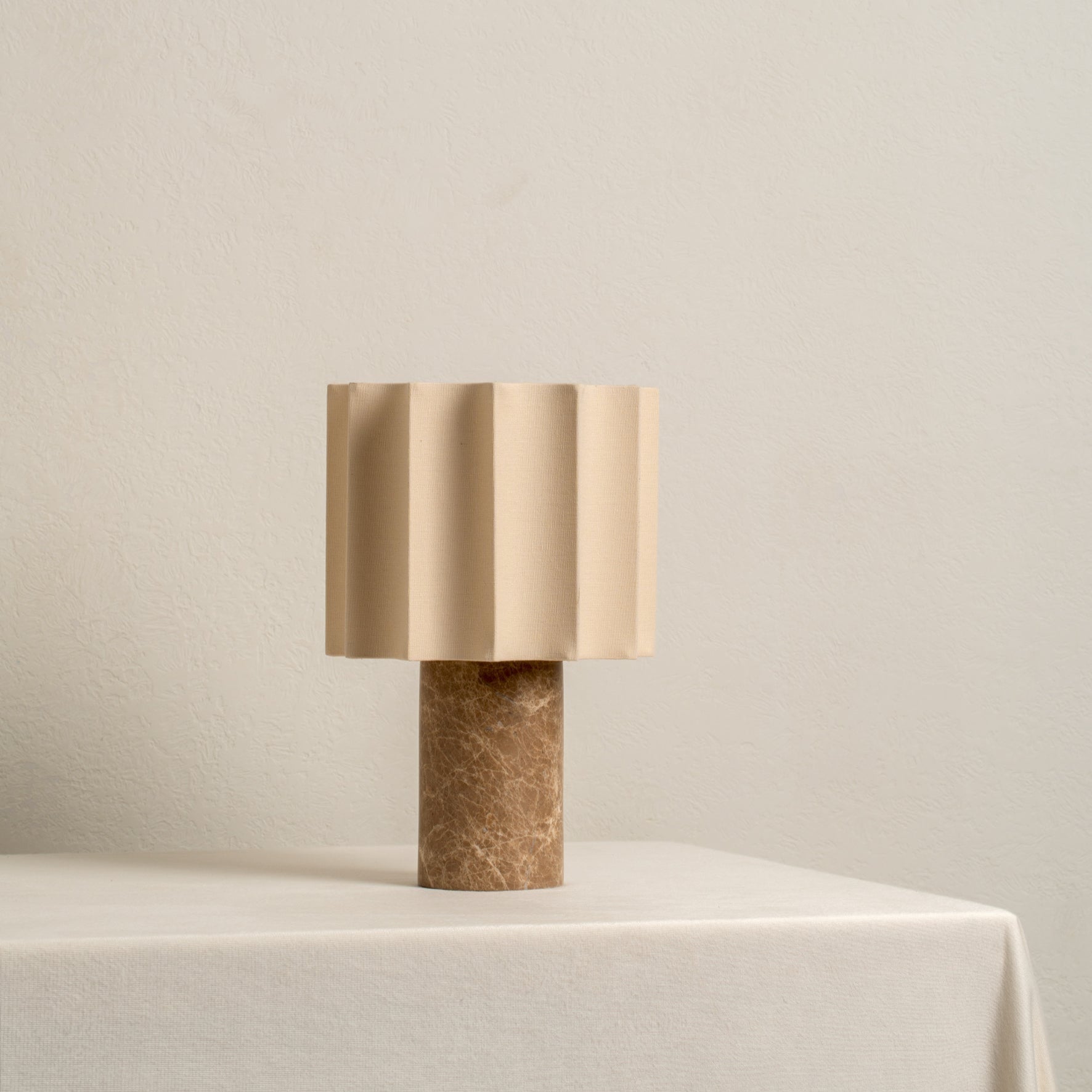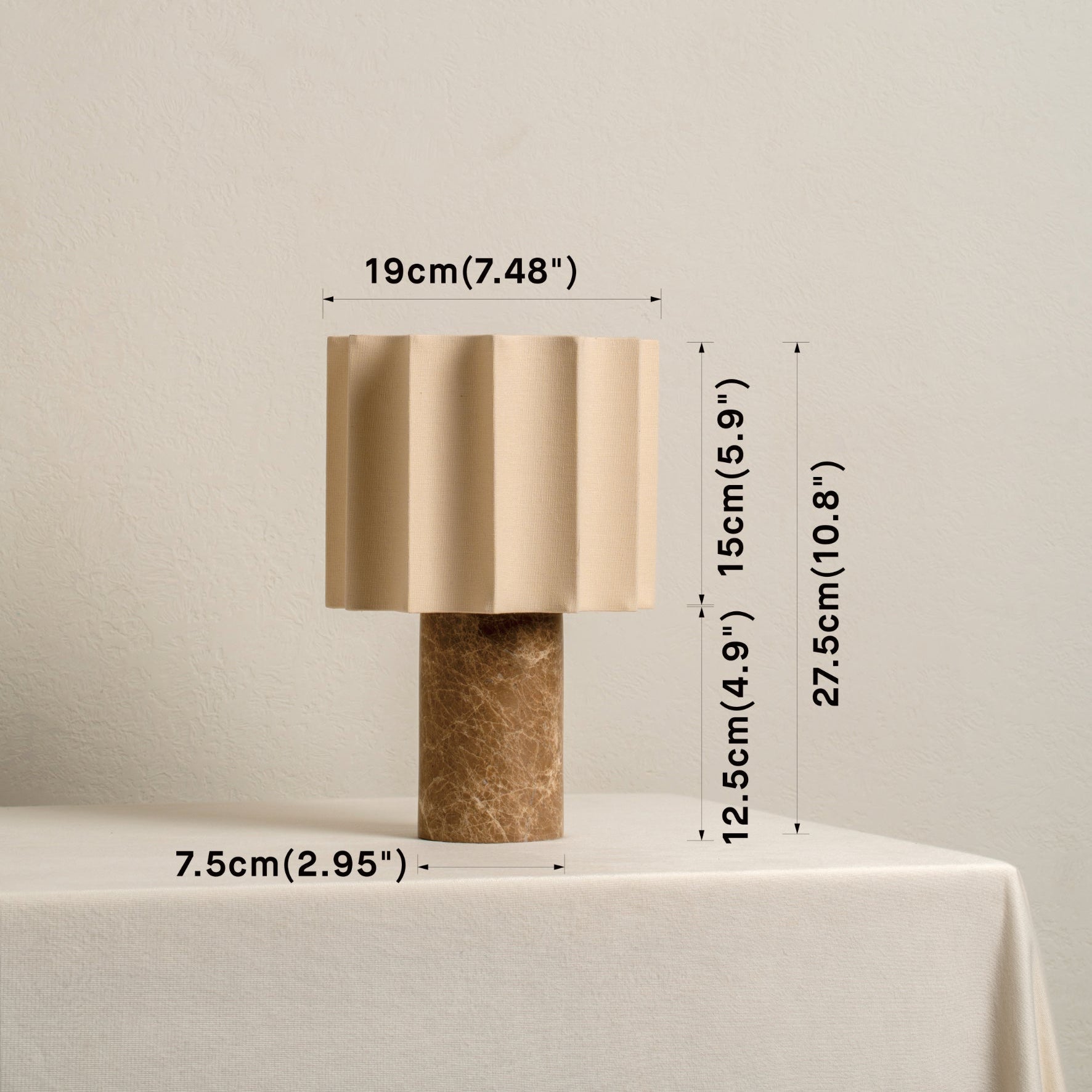 • Material: Spansk Denari marmorbasis, beige linneskärm