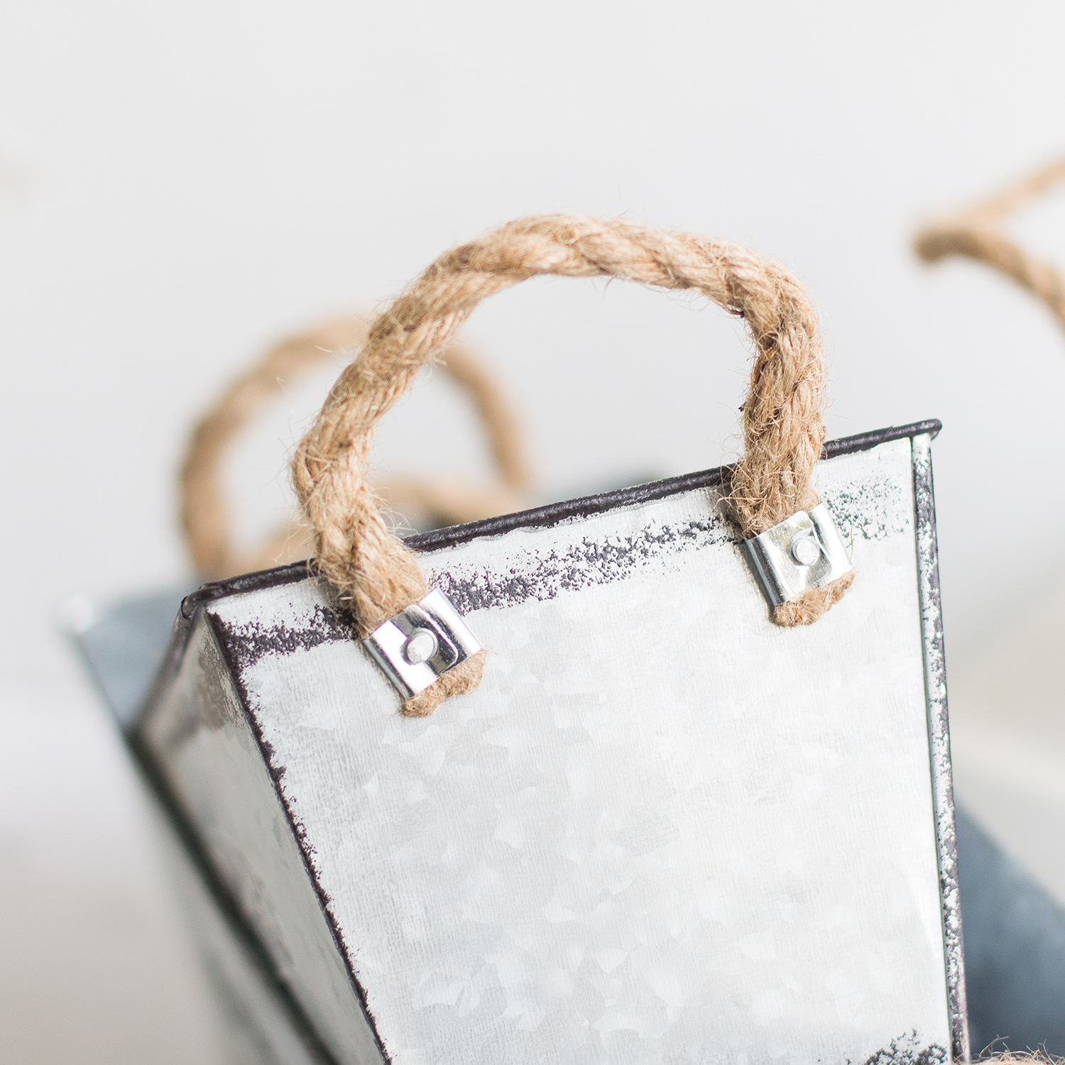 Stilfull växtpresentation – Metall-trädgårdsbehållare med hampasnoddhandtag