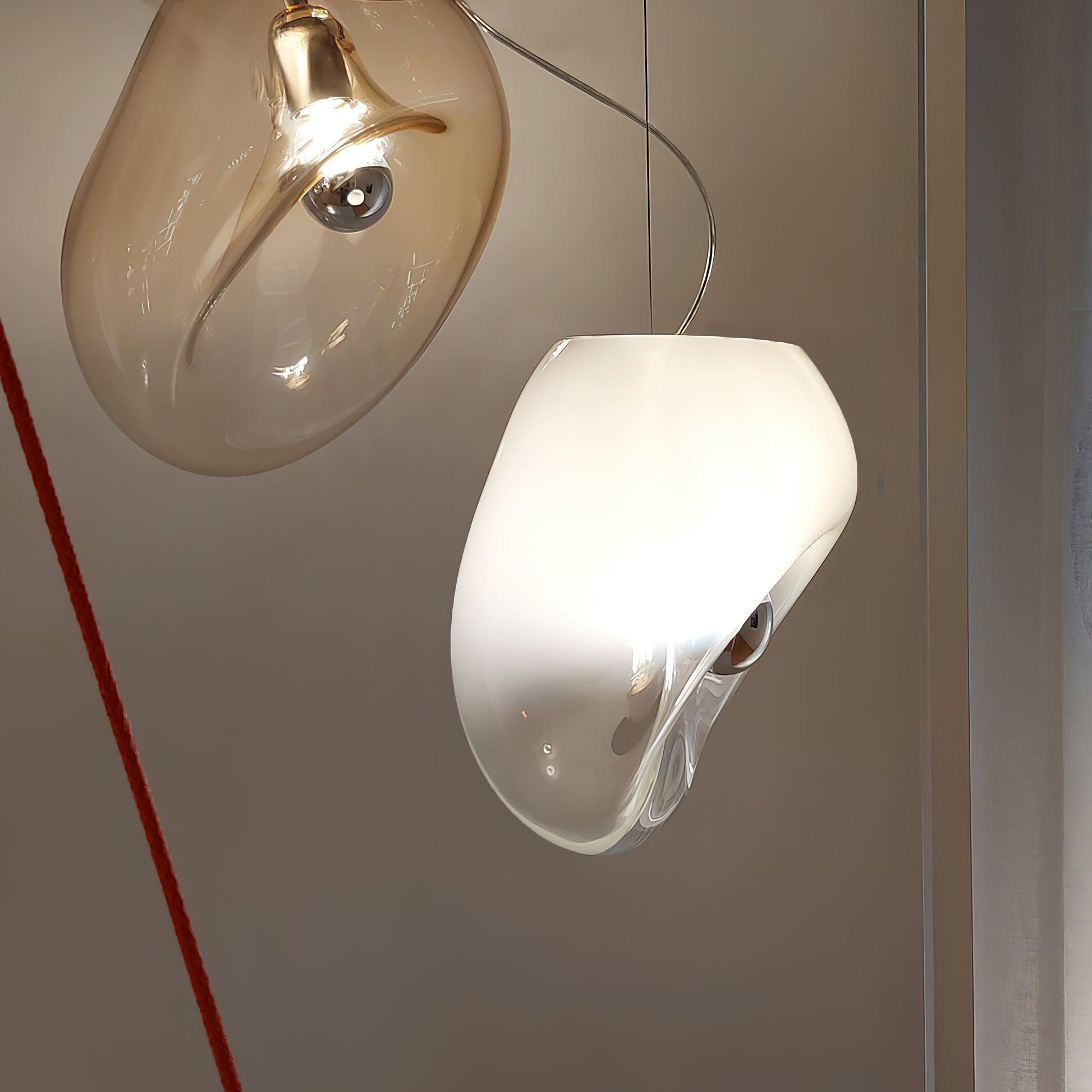Denna hänglampa med droppformade element ger ett fräscht utseende till alla rum med sin rena, minimalistiska design. Inspirerad av den naturliga skönheten hos vattendroppar, använder den fint blåst glas-teknik för att fånga ögonblicket när vattendroppar bildas i luften. Det klara glaset framhäver det mjuka skenet från ljuskällan, vilket resulterar i en lugnande och harmonisk ljuseffekt. Oavsett om du väljer en enda lampa som dekorativt inslag eller flera över ett matbord eller i vardagsrummet, integrerar dessa hängande vattendroppslampor perfekt i varje inredningsdesign och förstärker atmosfären.