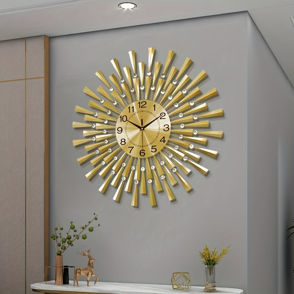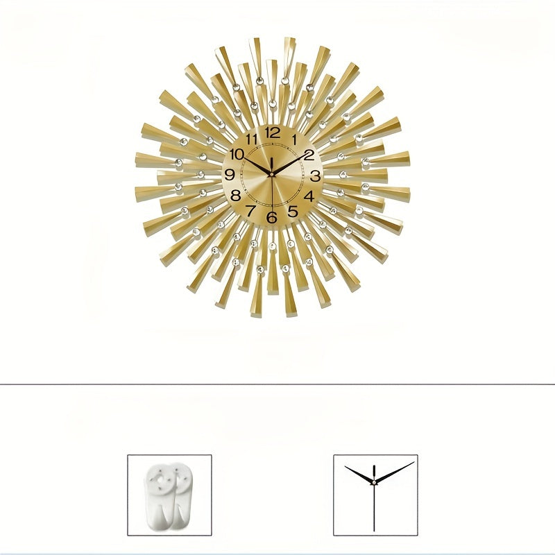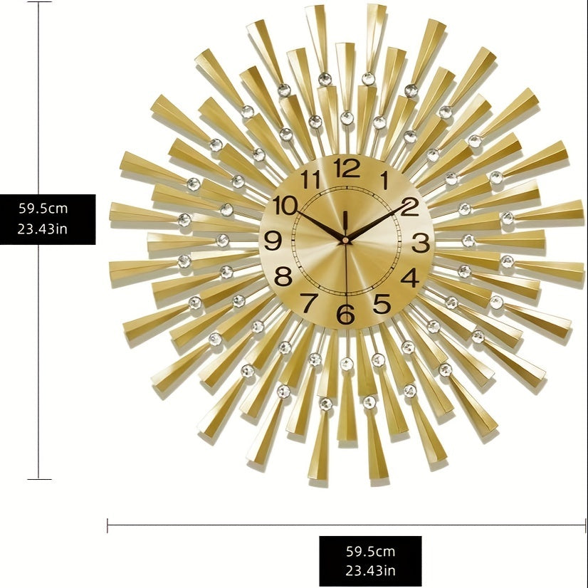 Ge stil och funktionalitet till ditt hem med denna moderna guld väggklocka. Med en elegant och tyst funktion skapar denna klocka lugn i varje rum utan störande tickande ljud. Idealisk för vardagsrum, sovrum och kontor, erbjuder denna batteridrivna klocka inte bara tidsvisning utan fungerar också som en iögonfallande dekorativ detalj. Den kristallklara designen tillför en touch av lyx till ditt inredning.