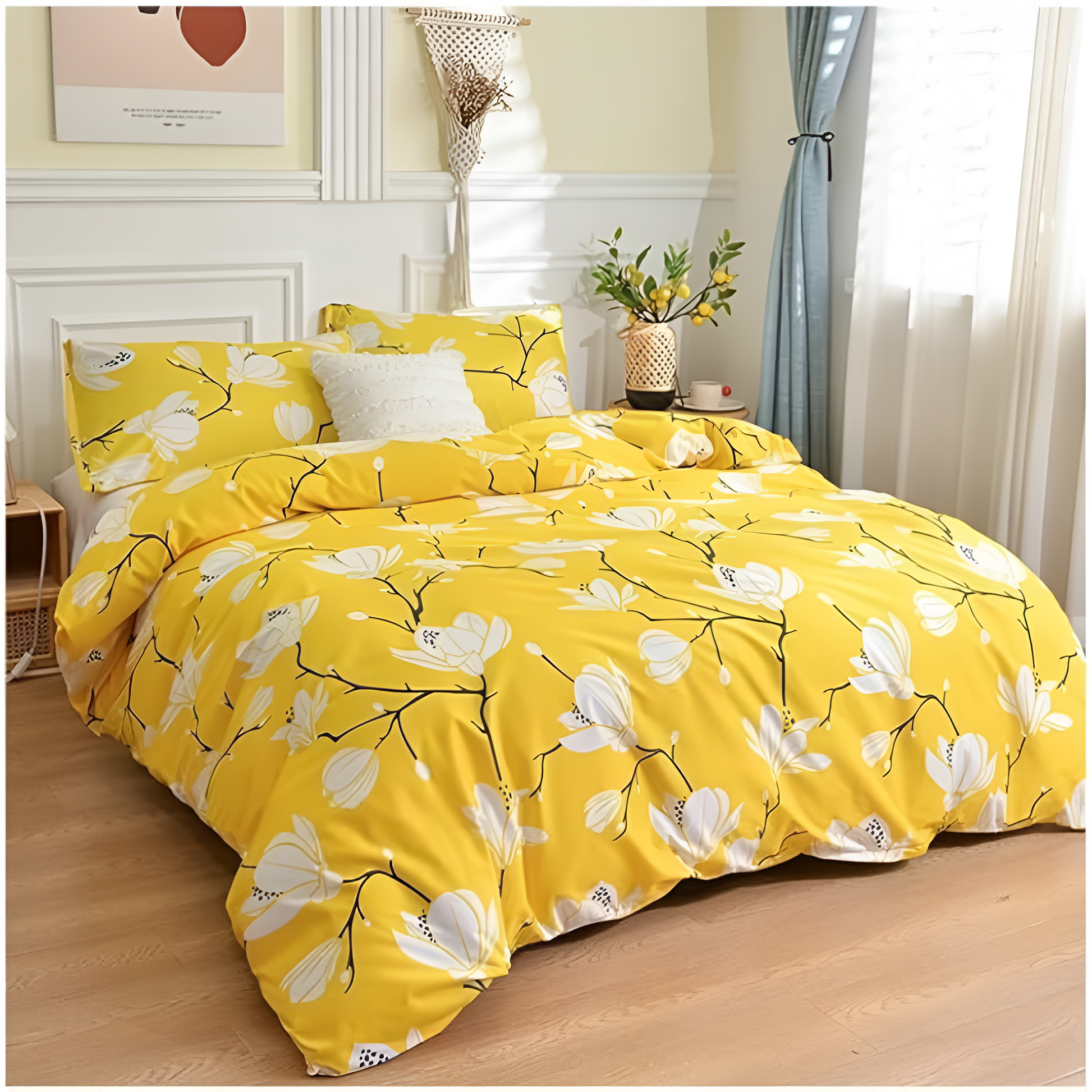 Upplev ultimat komfort med Yellow Blossom | 3-delars Duvet Cover Set, tillverkat av andningsbart, lätt borstad mikrofiber för en mjuk känsla och avkopplande sömn. Dess eleganta enfärgade design ger en lyxig hotellkänsla till ditt sovrum, medan dragkedjan och de inre snören håller din täcke säkert. Ett måste i din sängtillbehörssamling.